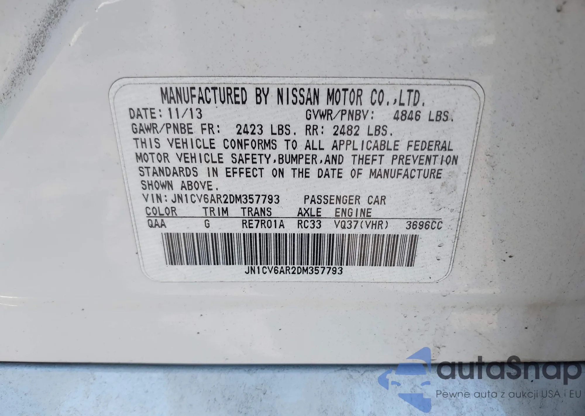 LOT: 43104863 VIN: JN1CV6AR2DM357793