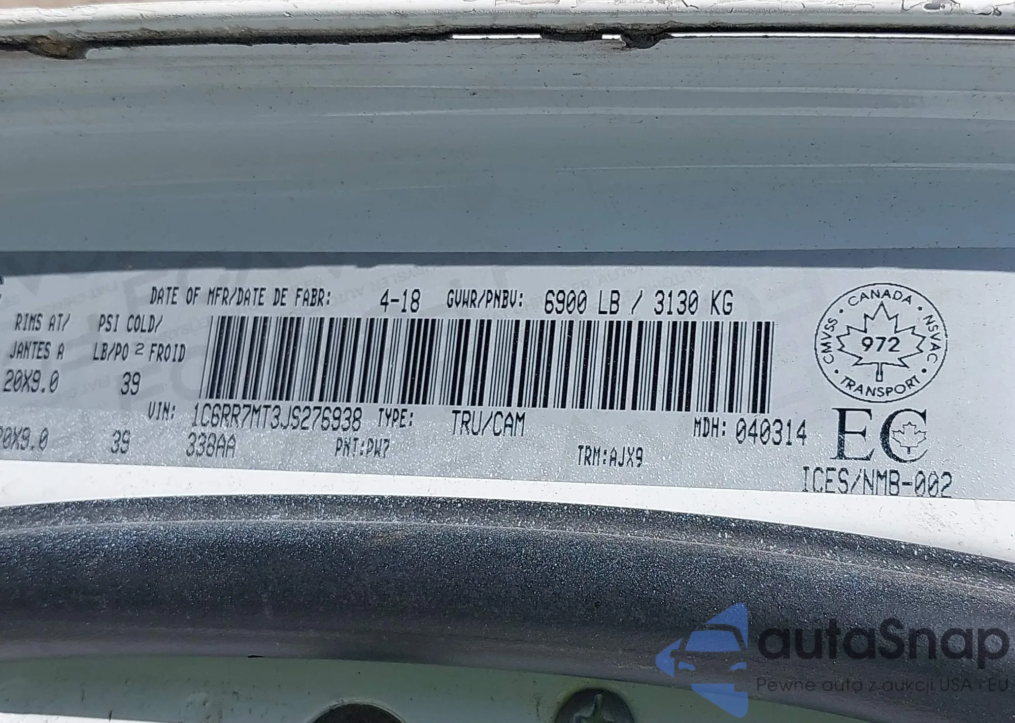 • VIN 4S3GTAB62J3750271