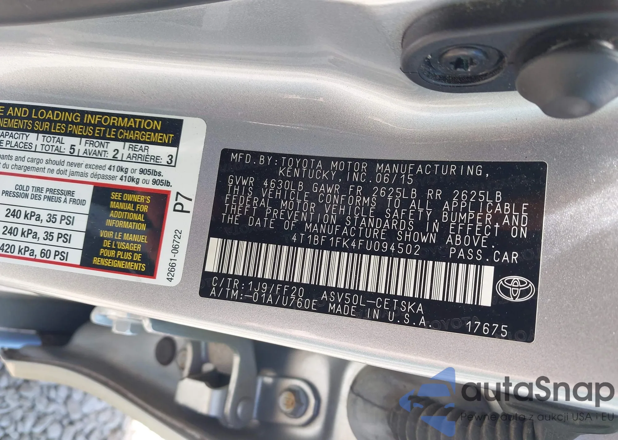 • VIN 4T1BF1FK9HU672239