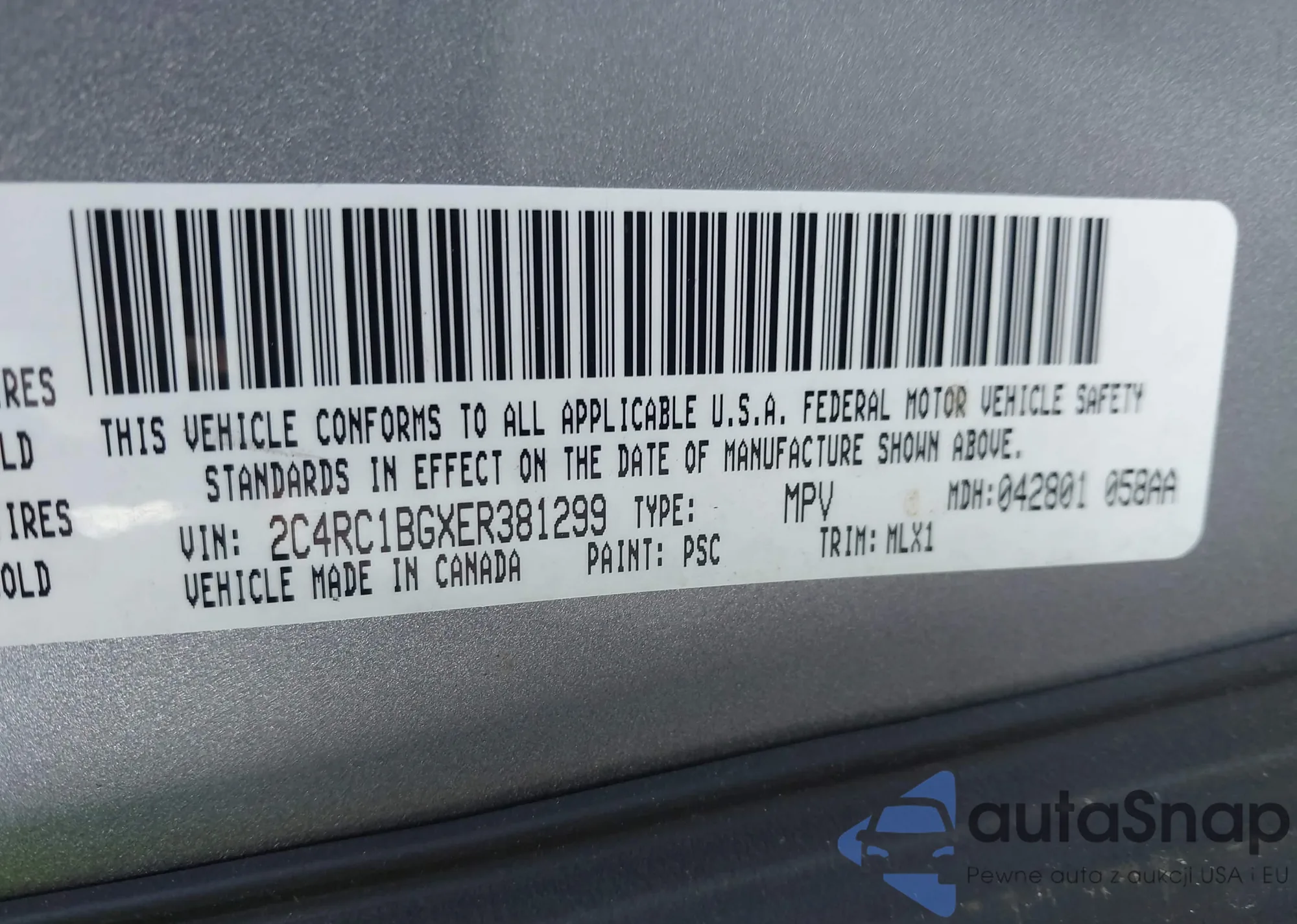 • VIN 2C4RC1BGXER381299