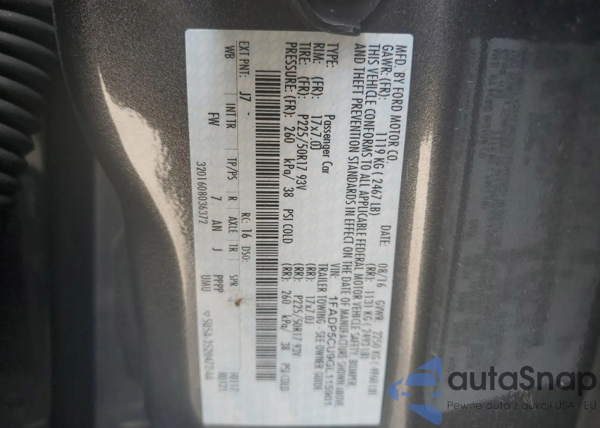 LOT: 80290735 VIN: 1FADP5CU9GL115901