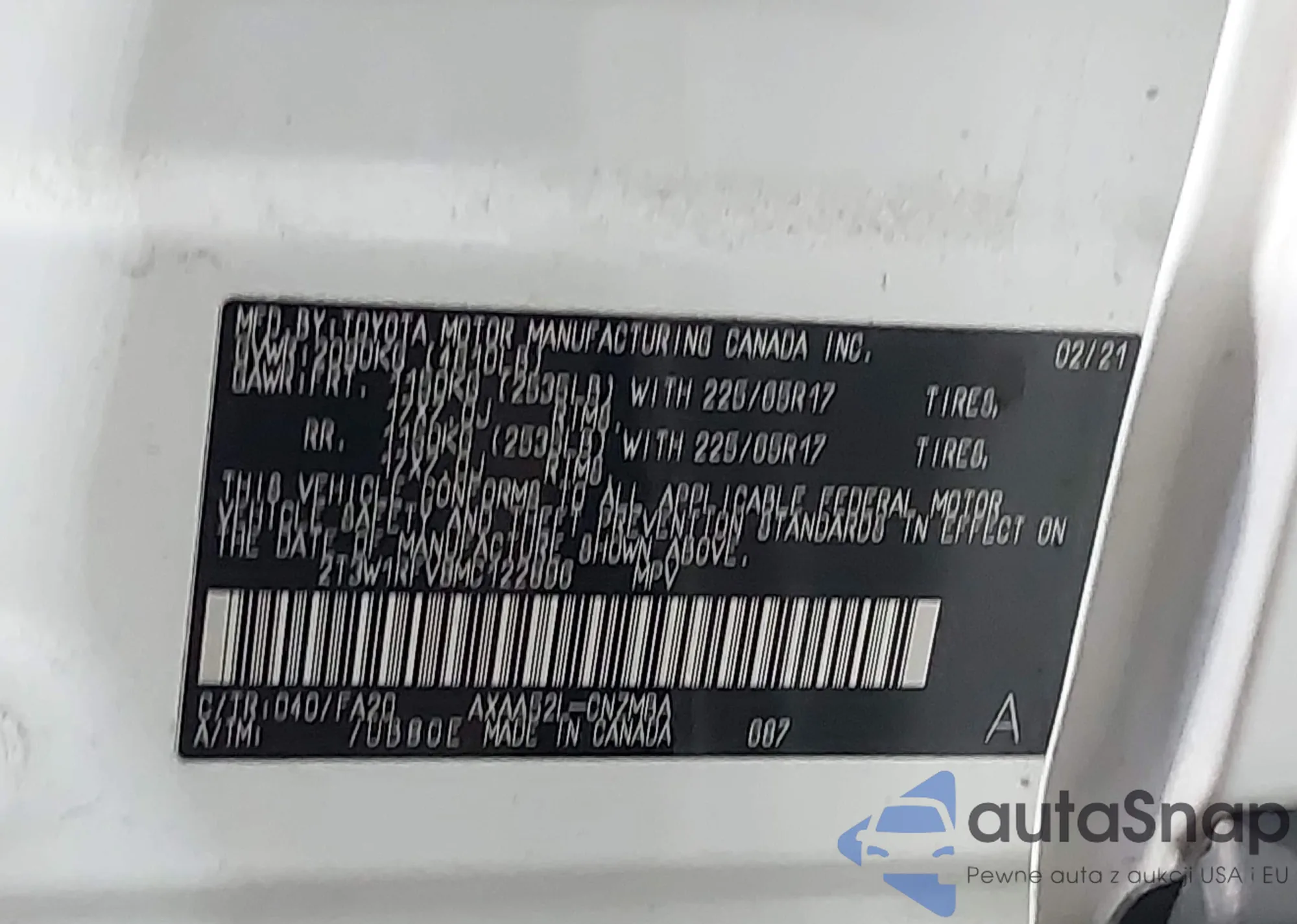 LOT: 43122908 VIN: 2T3W1RFV8MC122896