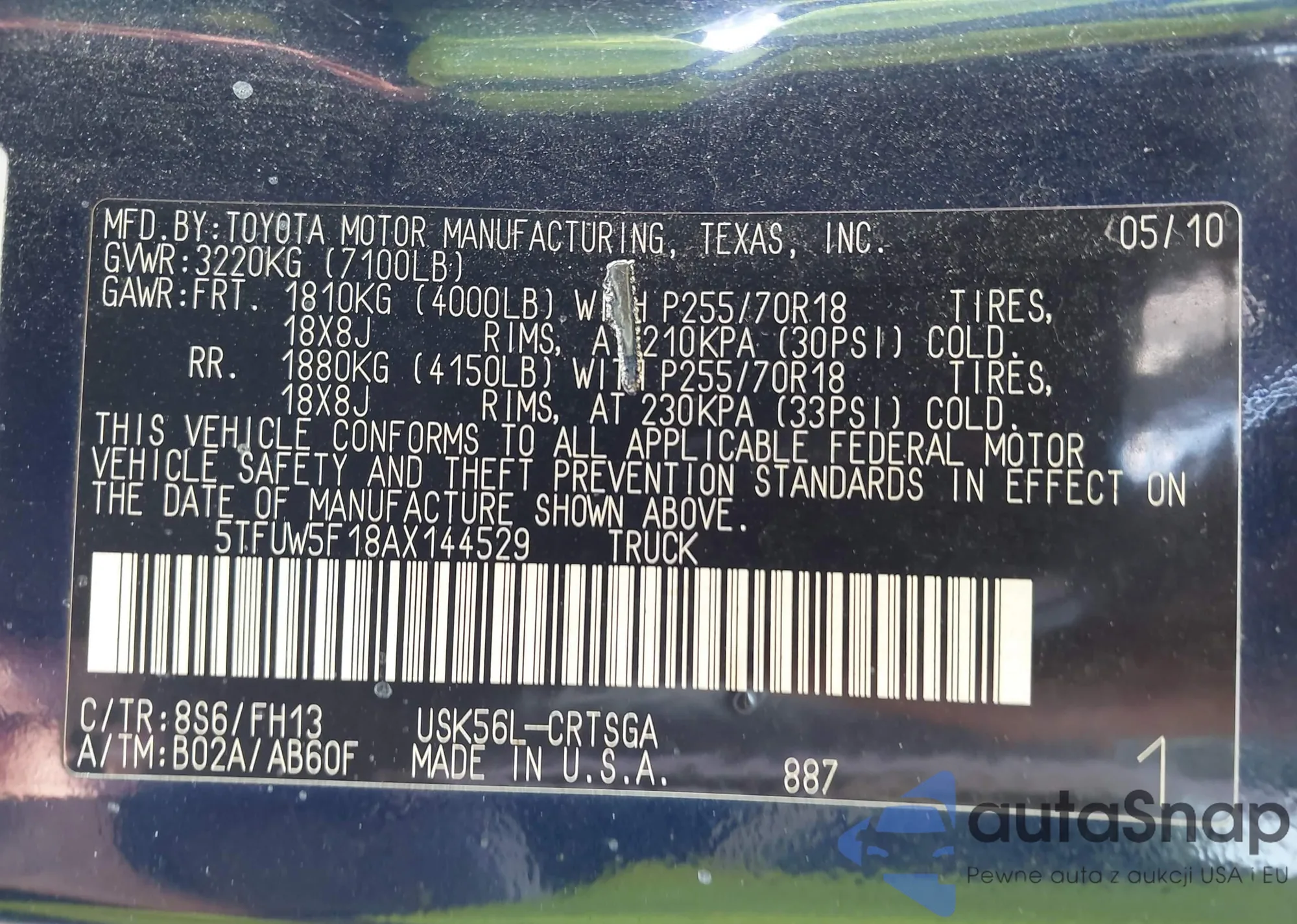 • VIN 5TFUW5F18AX144529