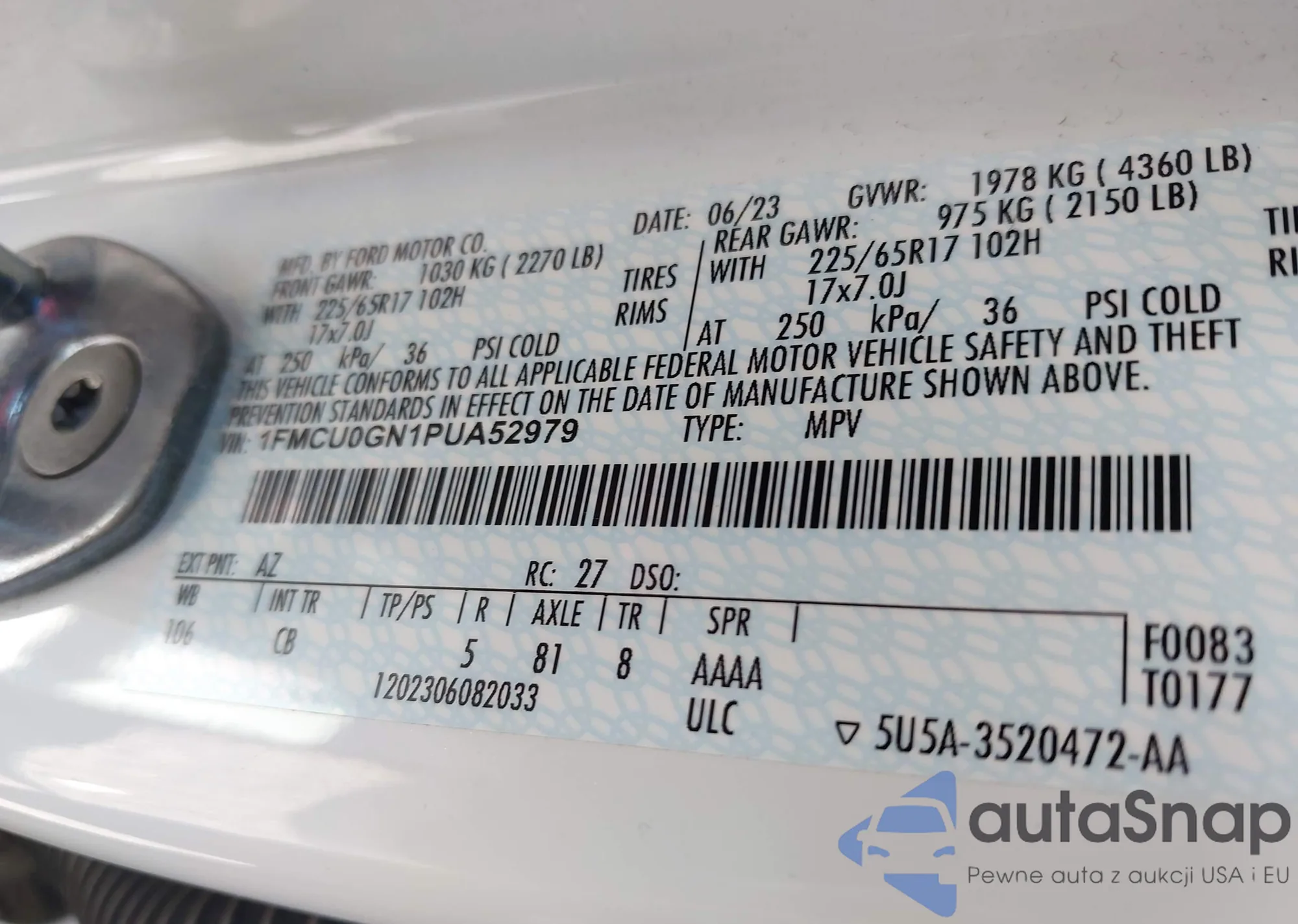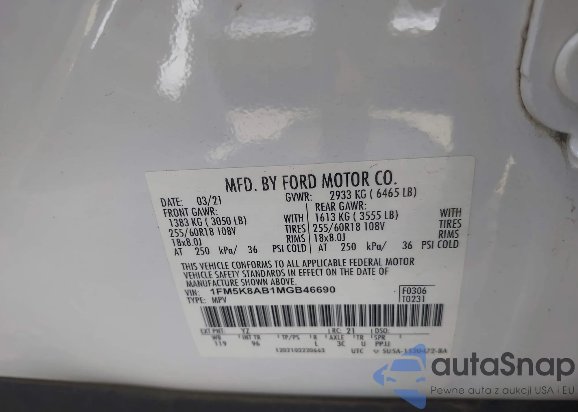 • VIN 1FM5K8AB1MGB46690