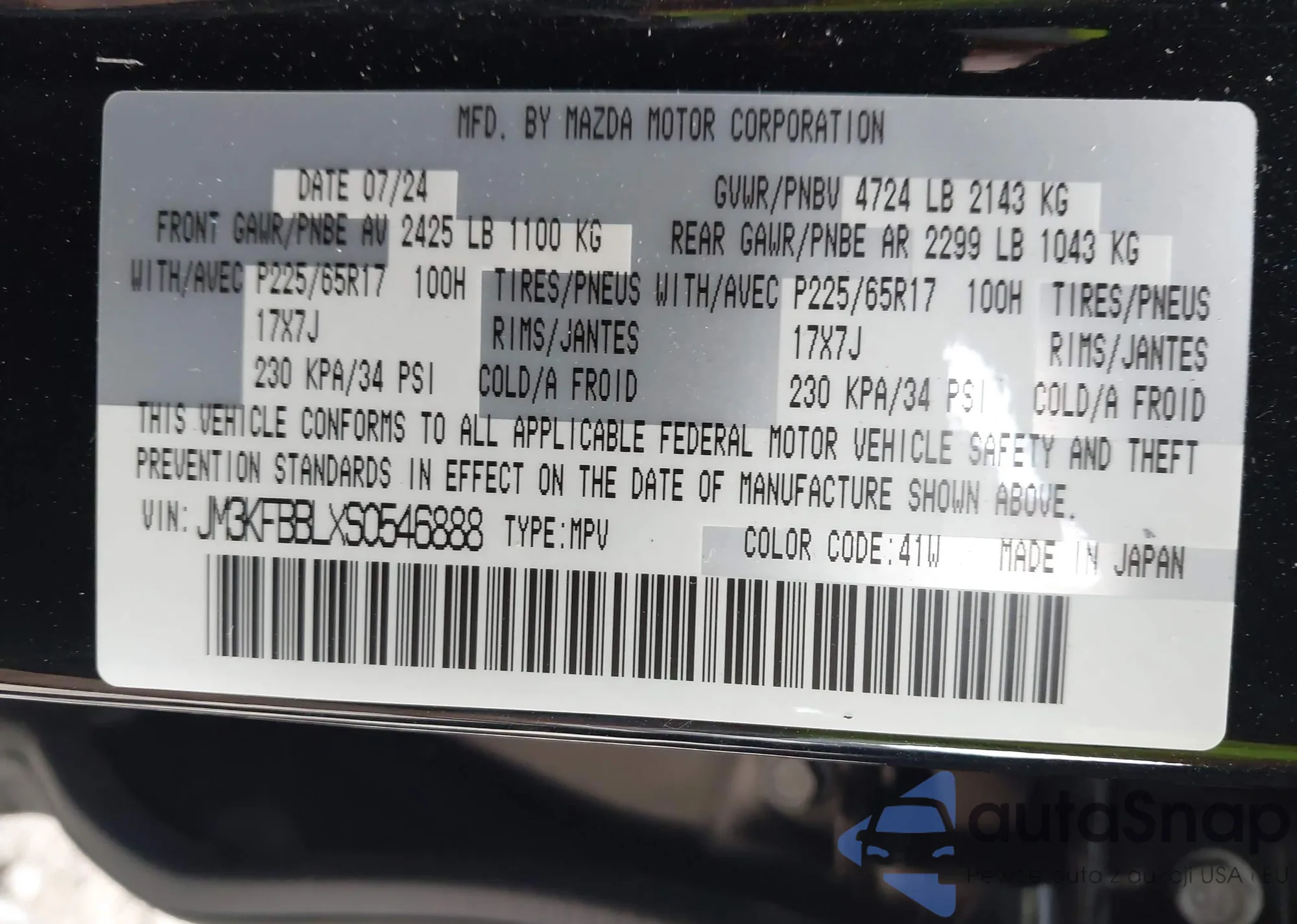 LOT: 42697571 VIN: JM3KFBBLXS0546888