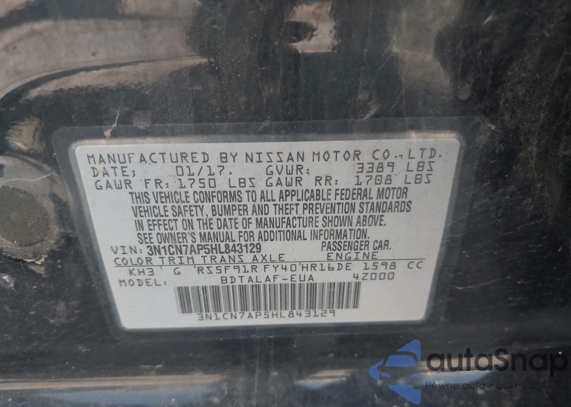 • VIN JN1BJ1CPXJW500768