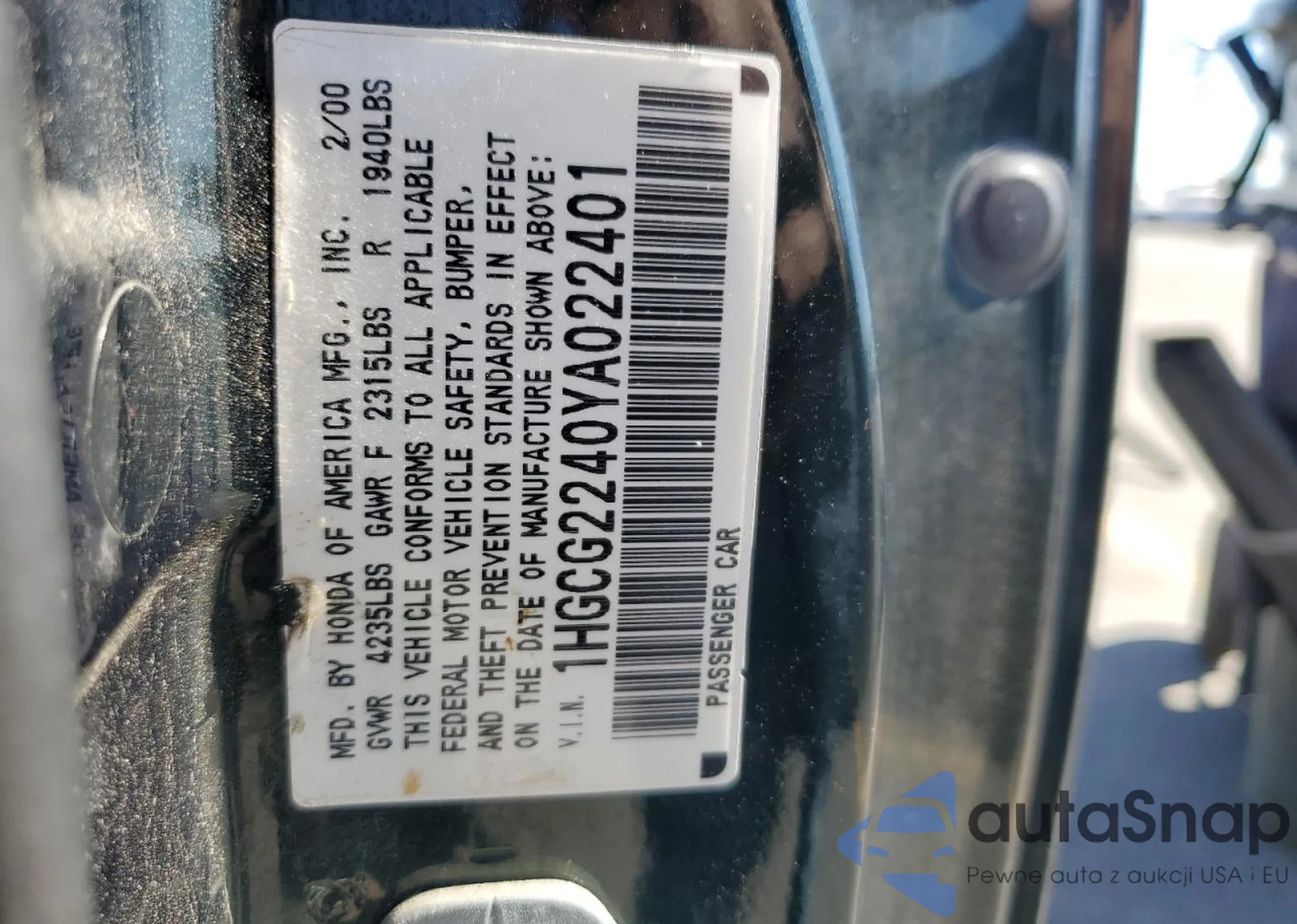 LOT: 81035085 VIN: 1HGCG2240YA022401