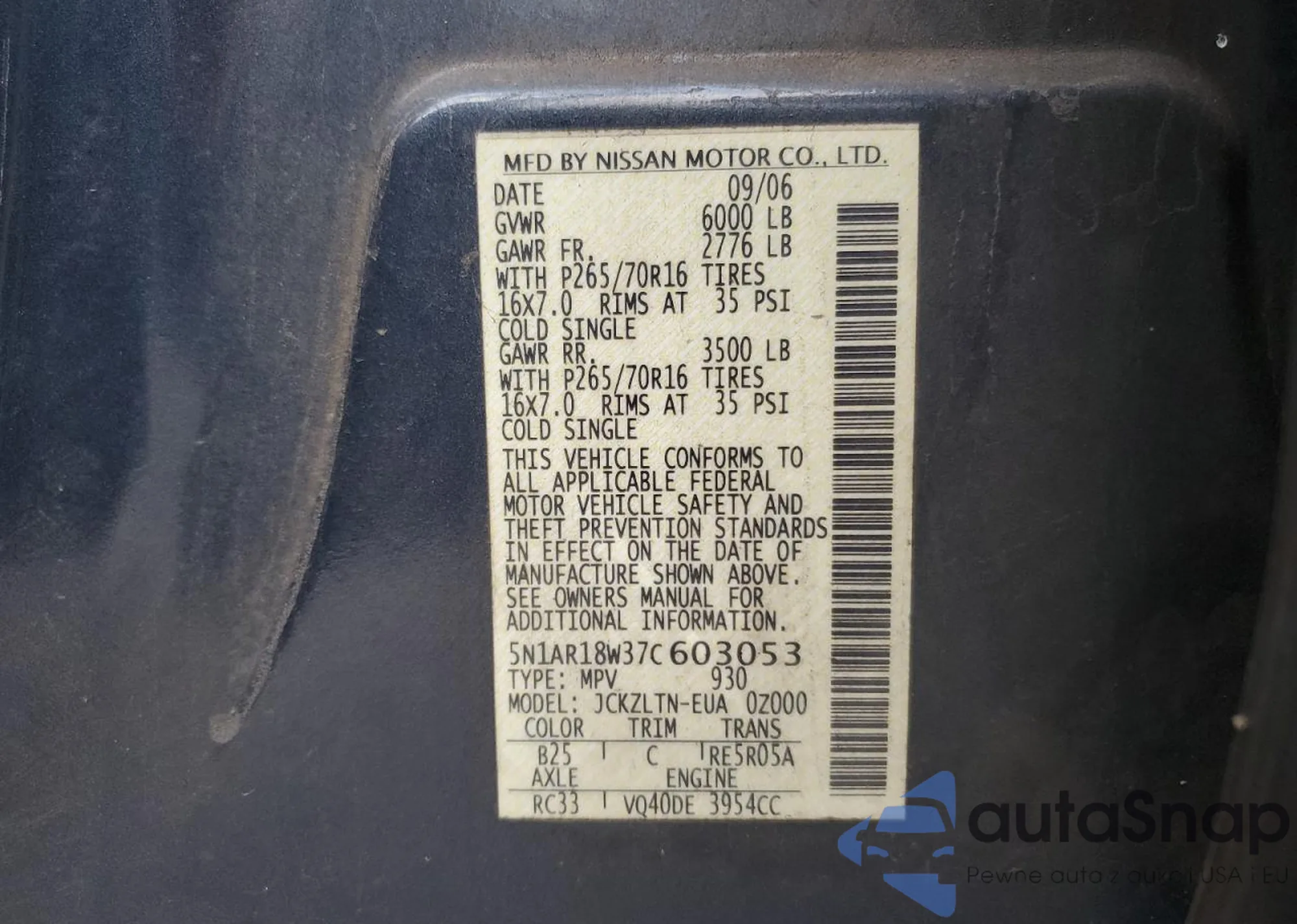 • VIN 5N1AR18W37C603053