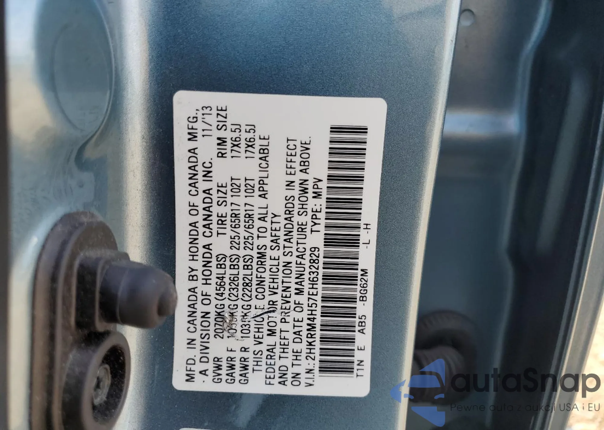 • VIN 2HKRM4H57EH632829