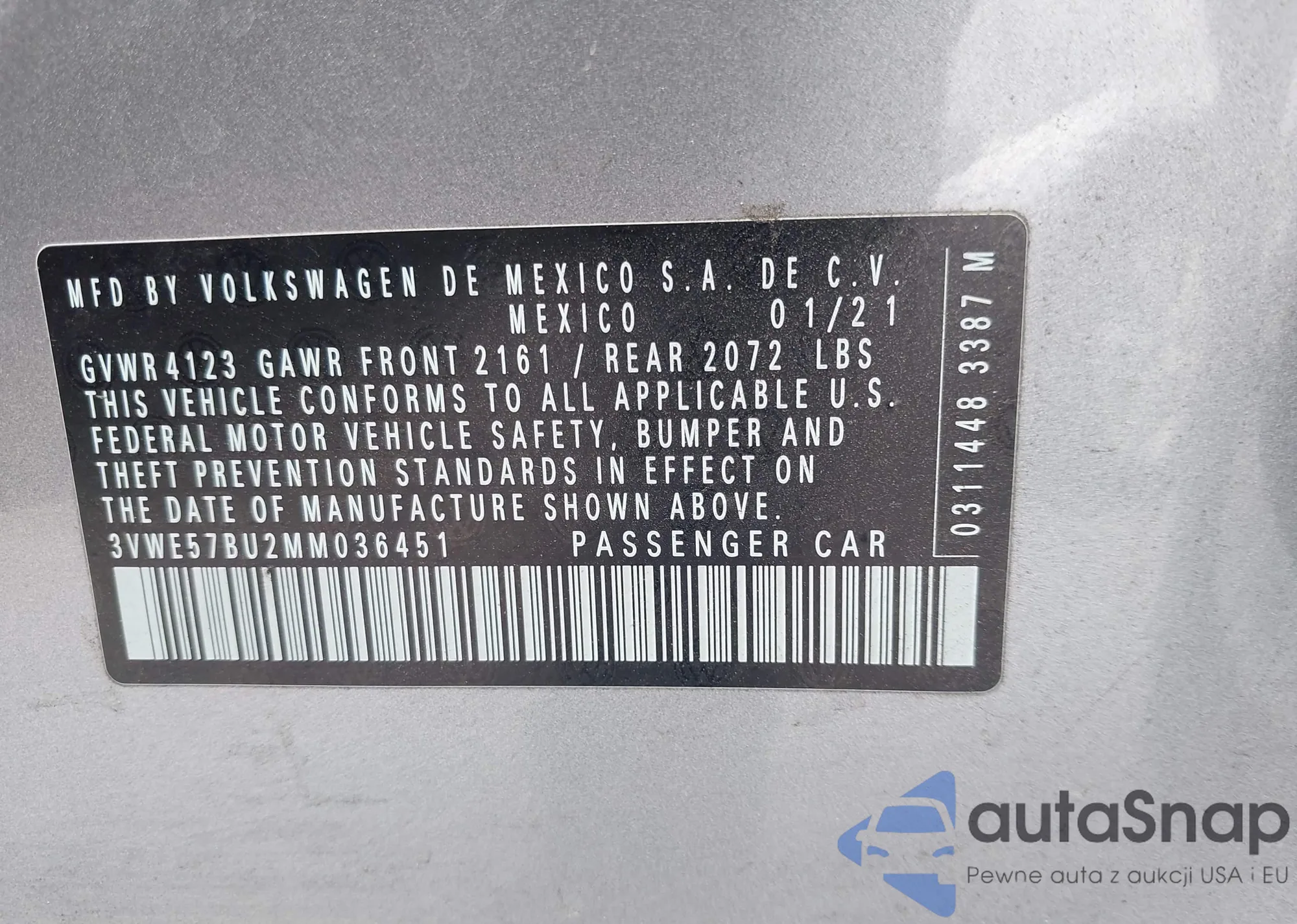 • VIN 3VWE57BU2MM036451