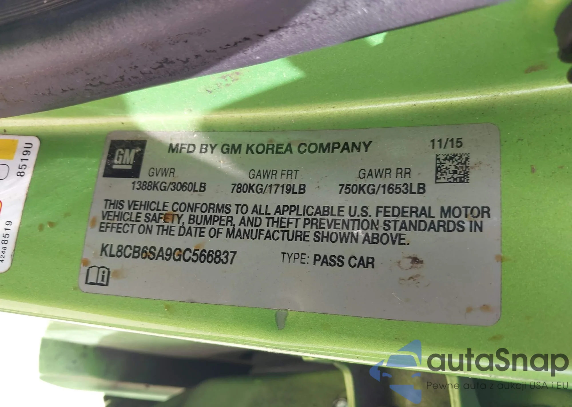• VIN KL8CB6SA9GC566837