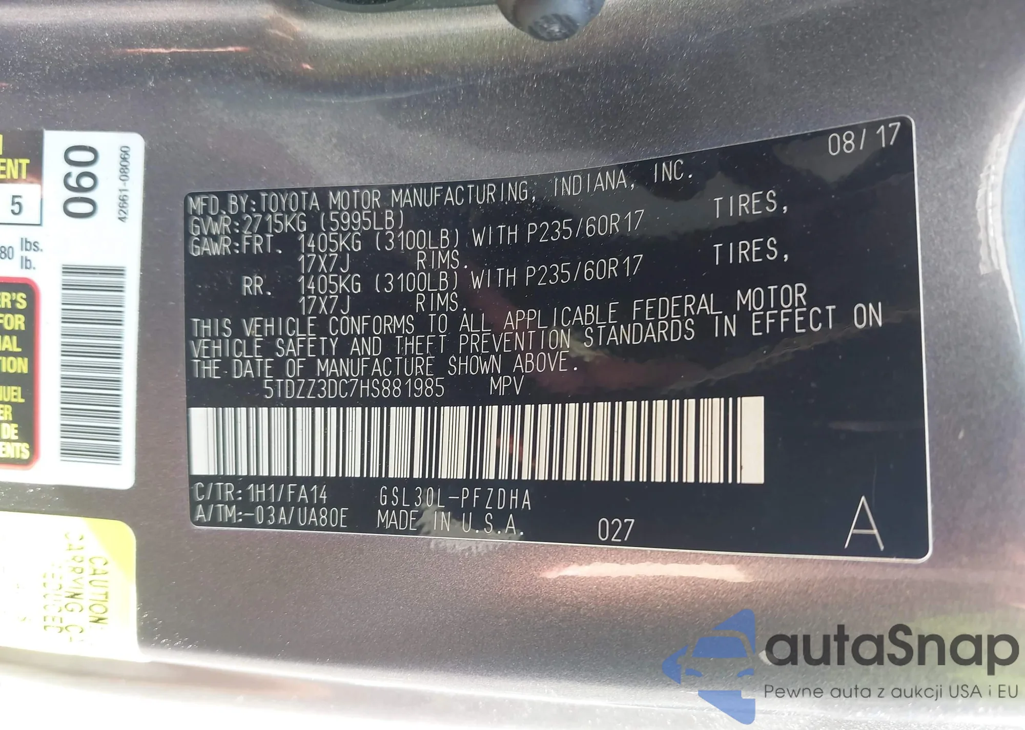 • VIN 5TDZZ3DC7HS881985
