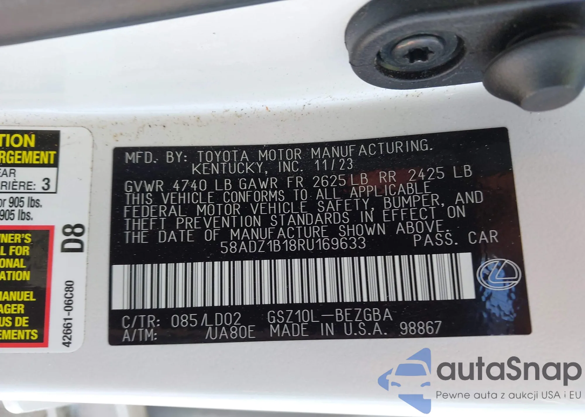 • VIN 58ADZ1B18RU169633