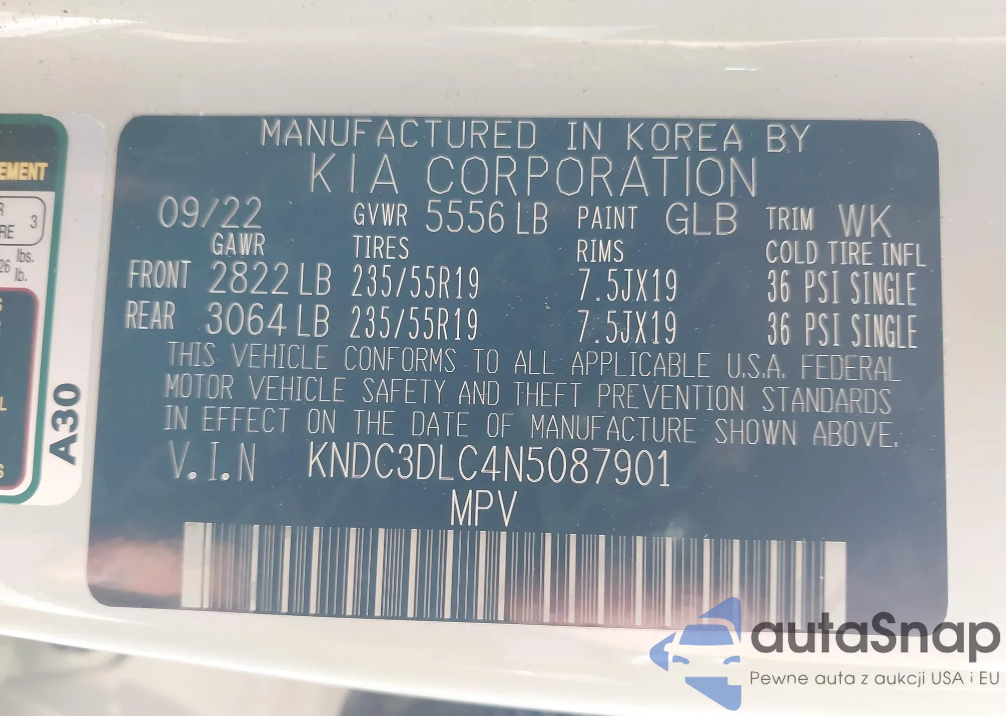 • VIN KNDC3DLC4N5087901