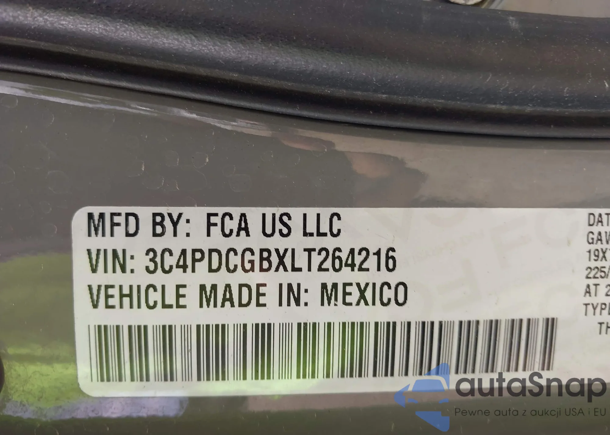 • VIN 3C4PDCGBXLT264216