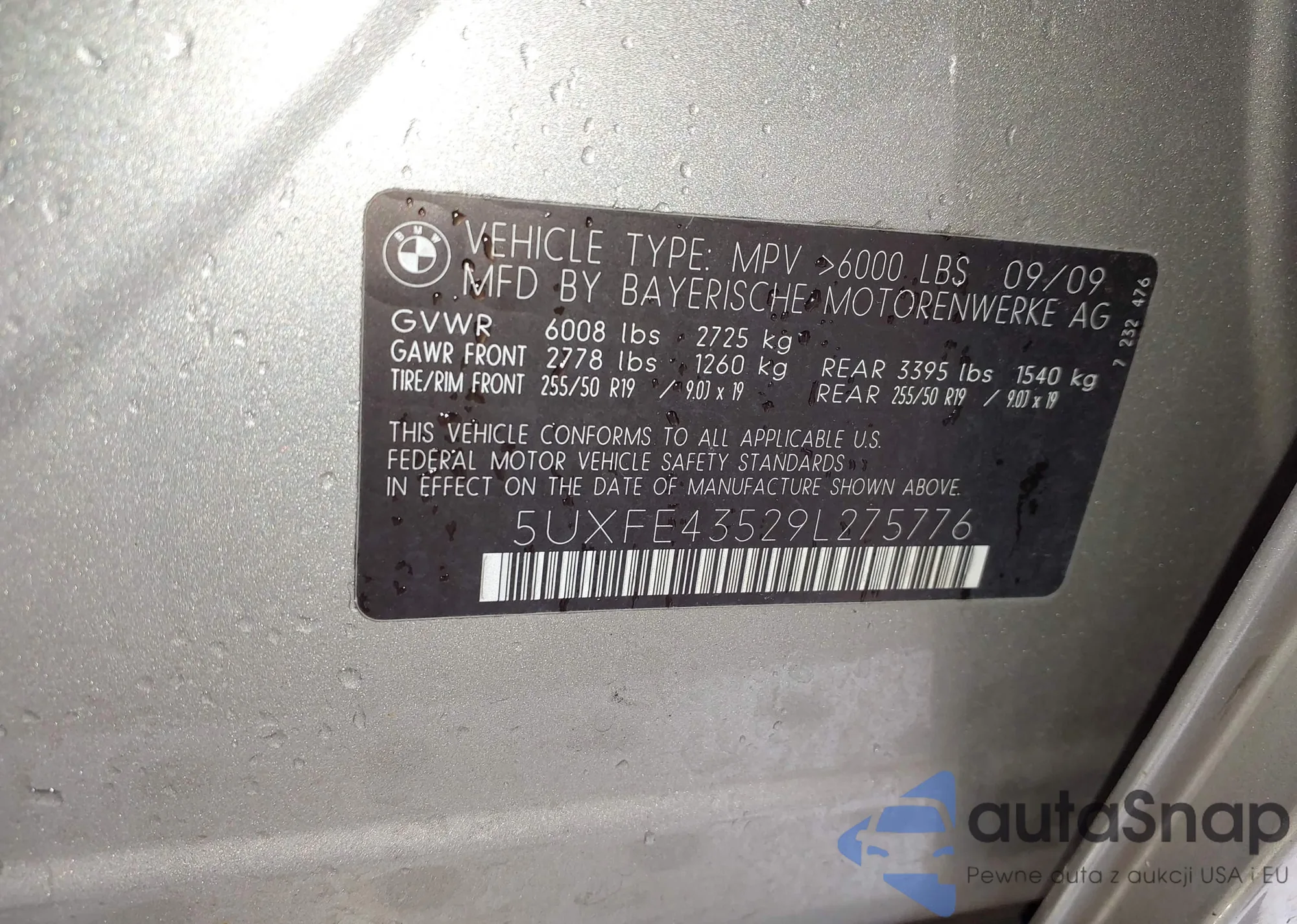 LOT: 41966264 VIN: 5UXFE43529L275776