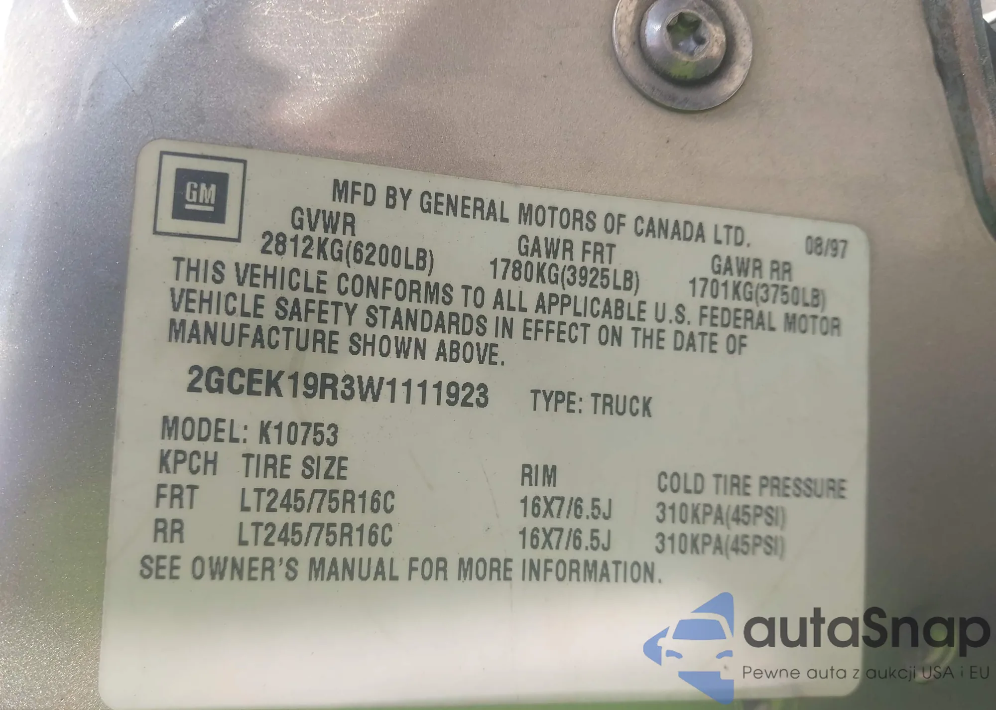 • VIN 2GCEK19R3W1111923