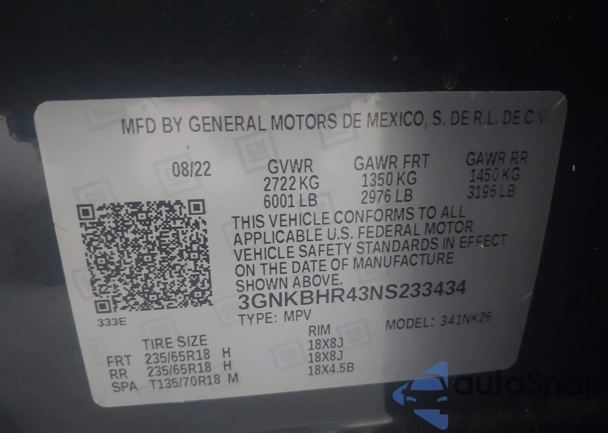 • VIN 2HKRW2H81MH677966