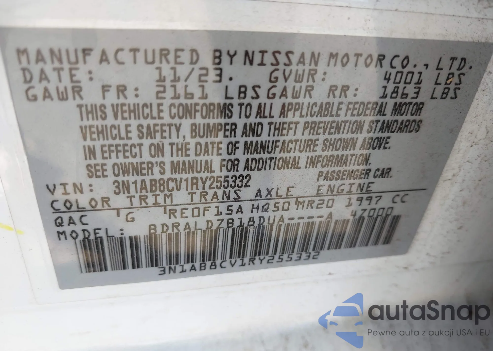• VIN 3N1AB8CV1RY255332