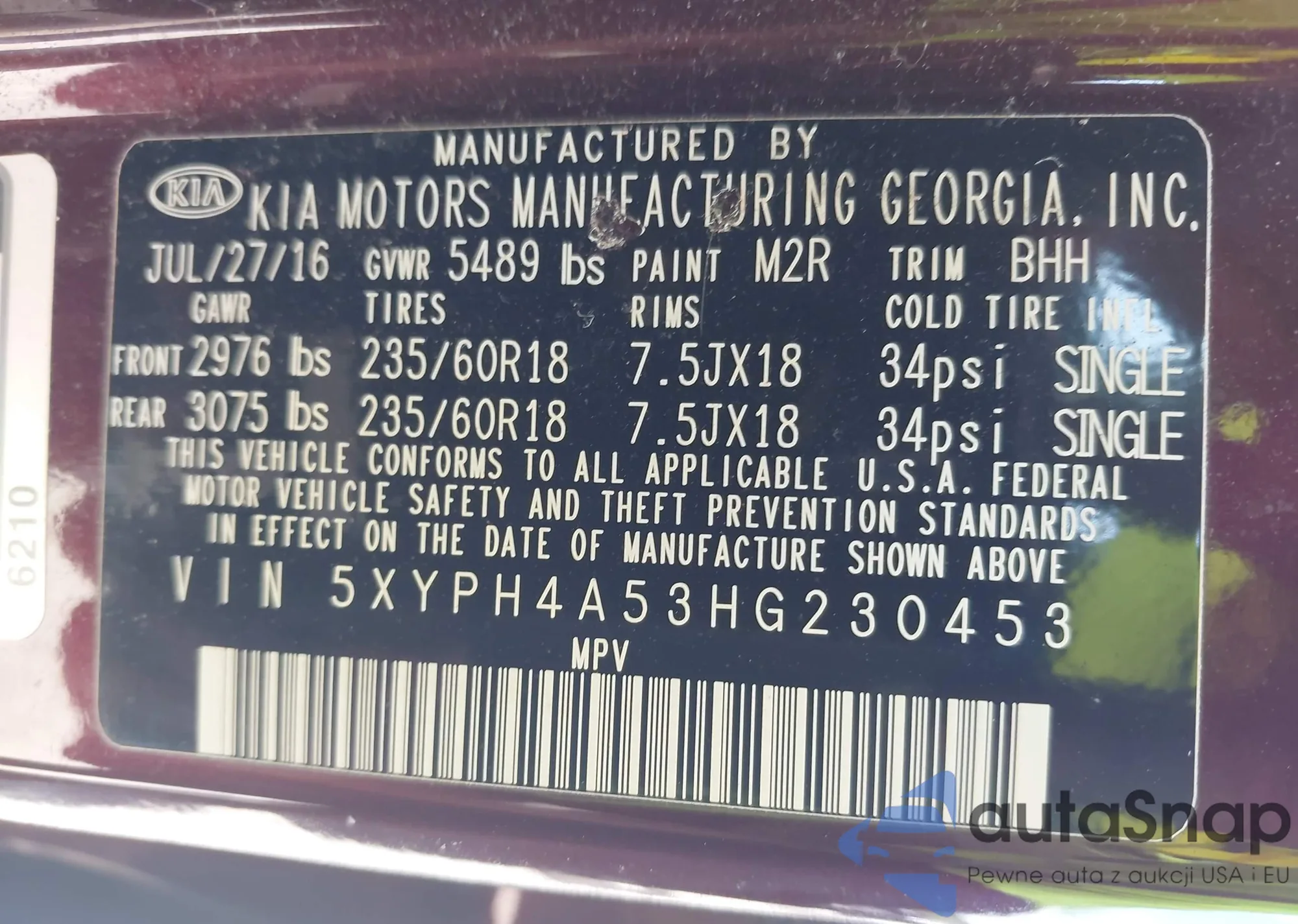 • VIN 5XYPH4A53HG230453