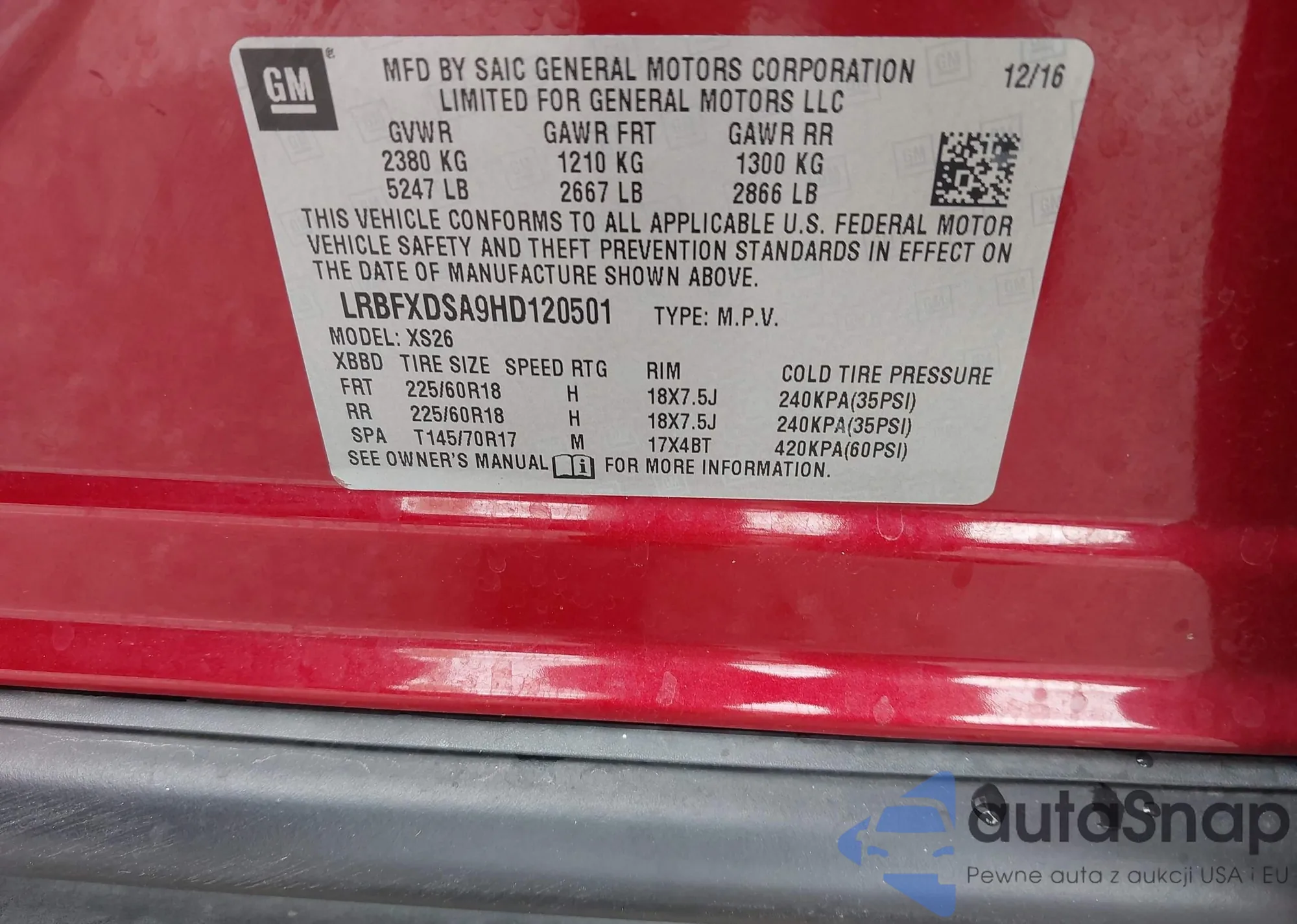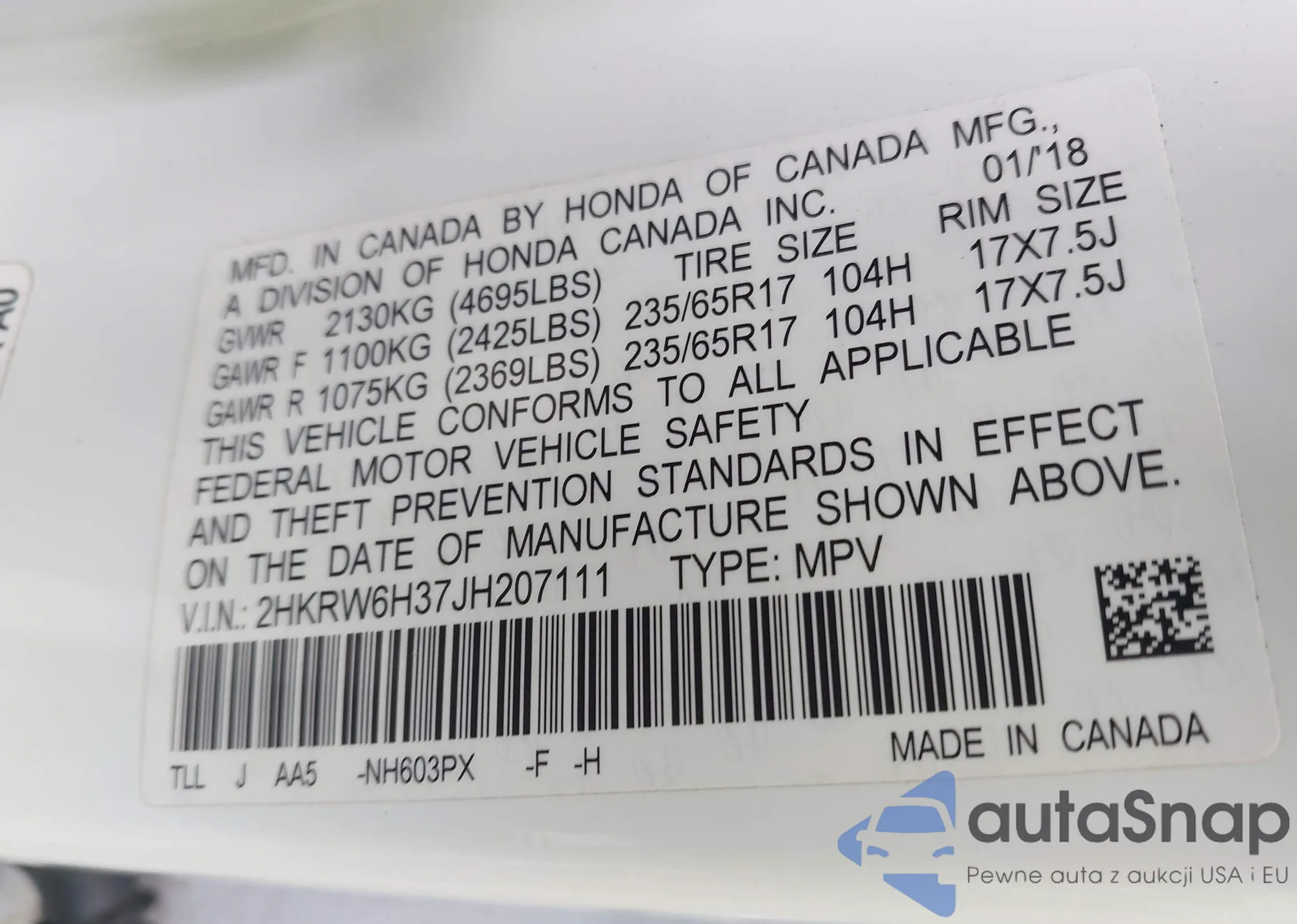 • VIN 2HKRW6H37JH207111