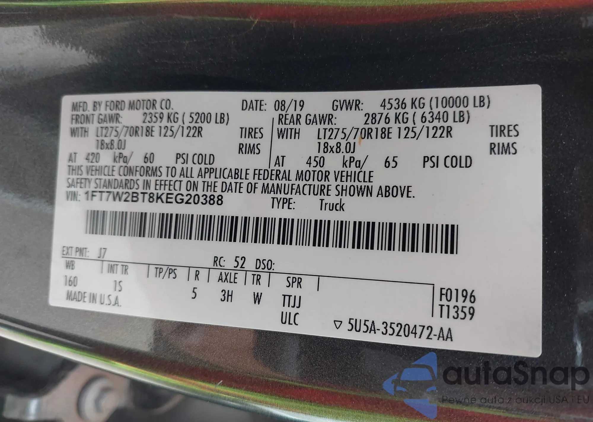 • VIN 1FT7W2BT8KEG20388