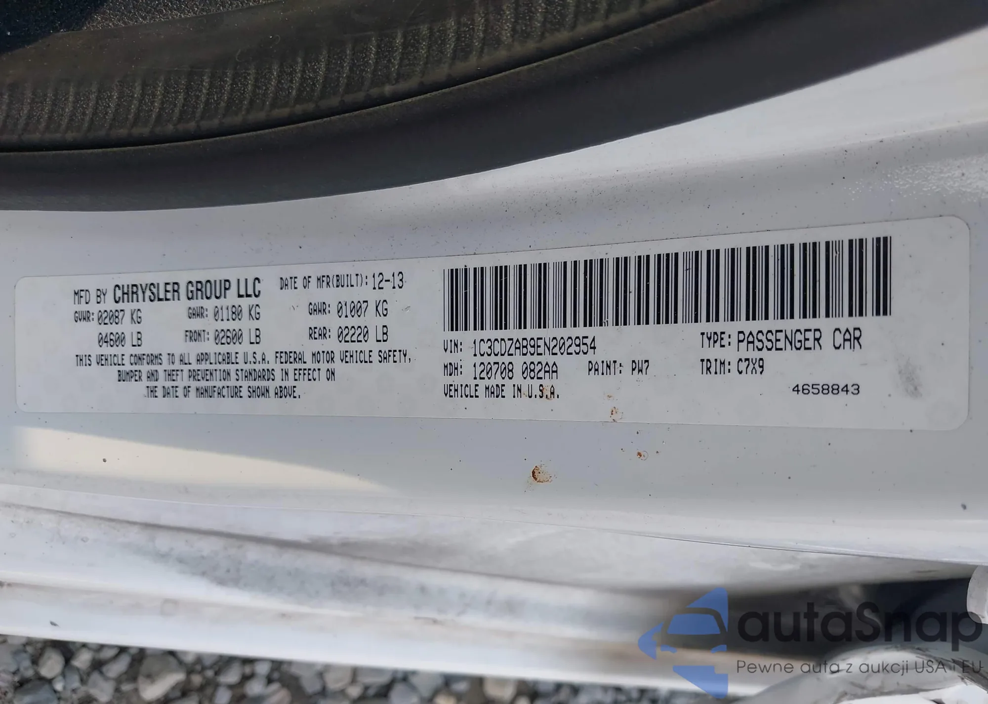 LOT: 43165862 VIN: 1C3CDZAB9EN202954