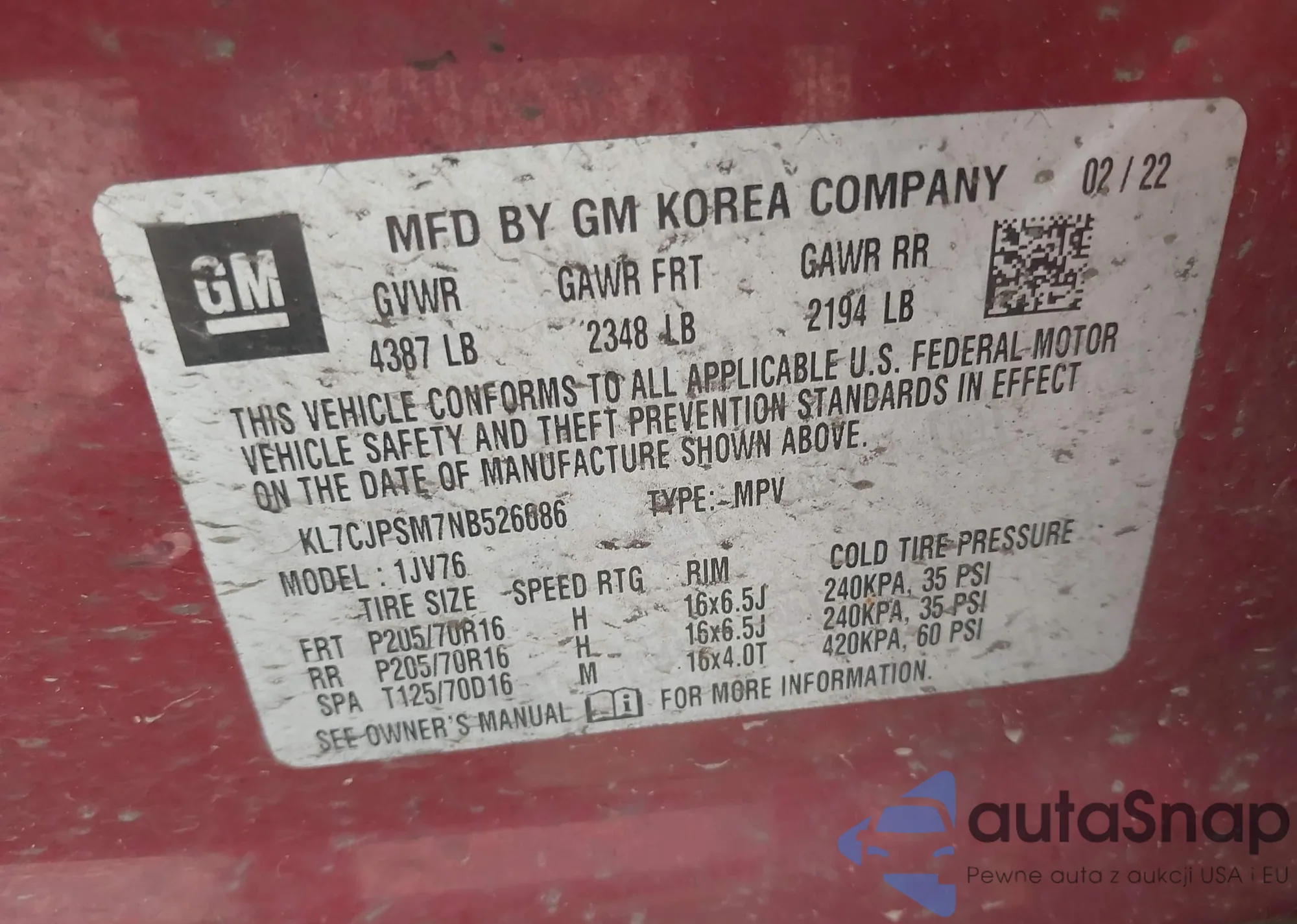 LOT: 42899961 VIN: 2GNAXSEV3J6169574