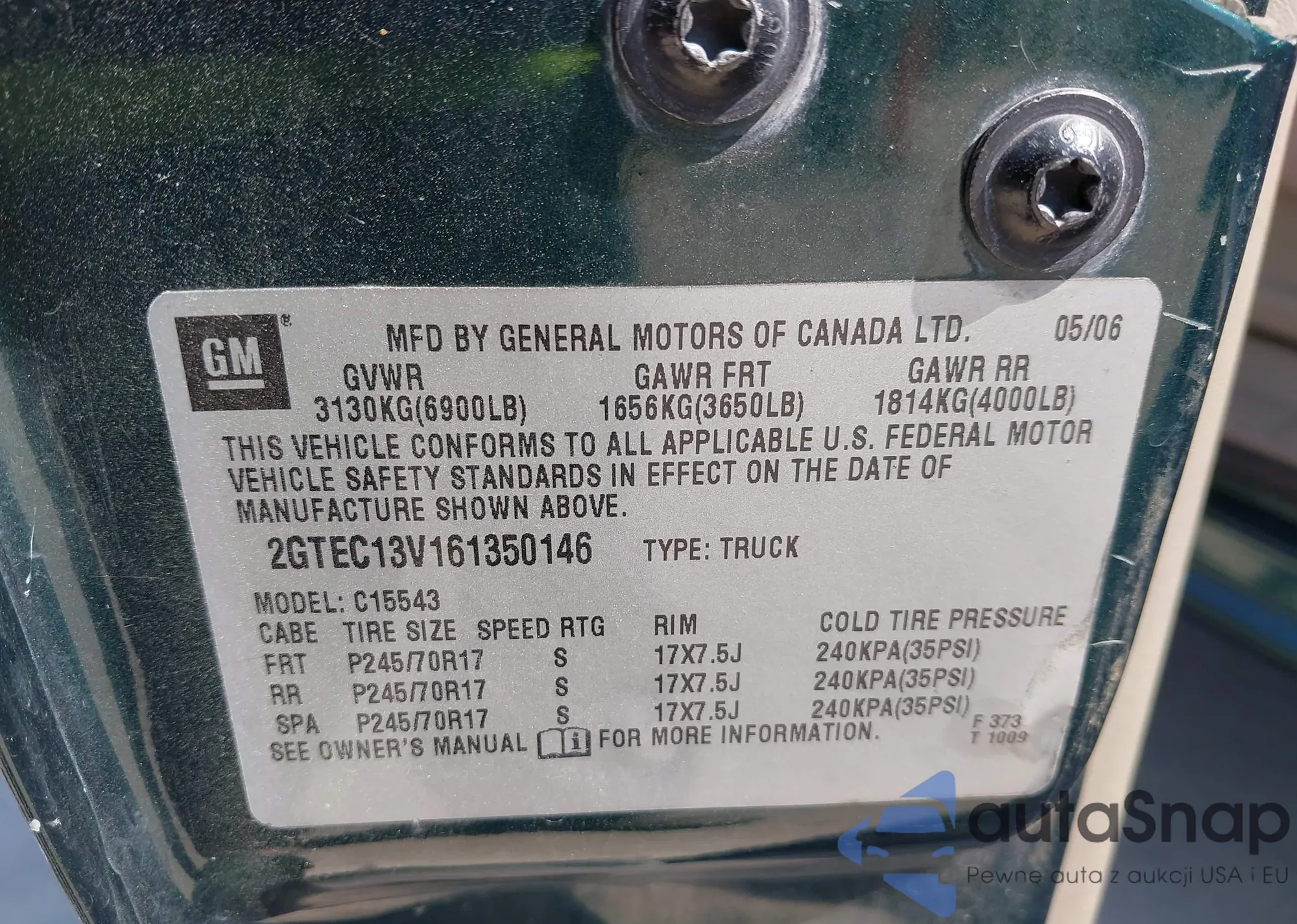 • VIN 2GTEC13V161350146