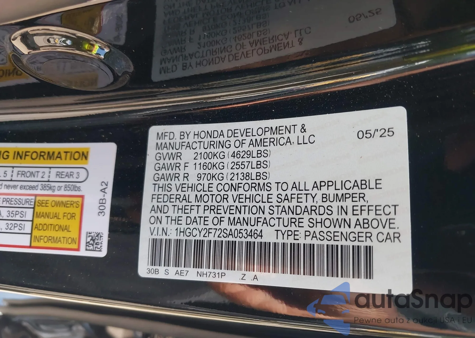 • VIN 1HGCY2F72SA053464