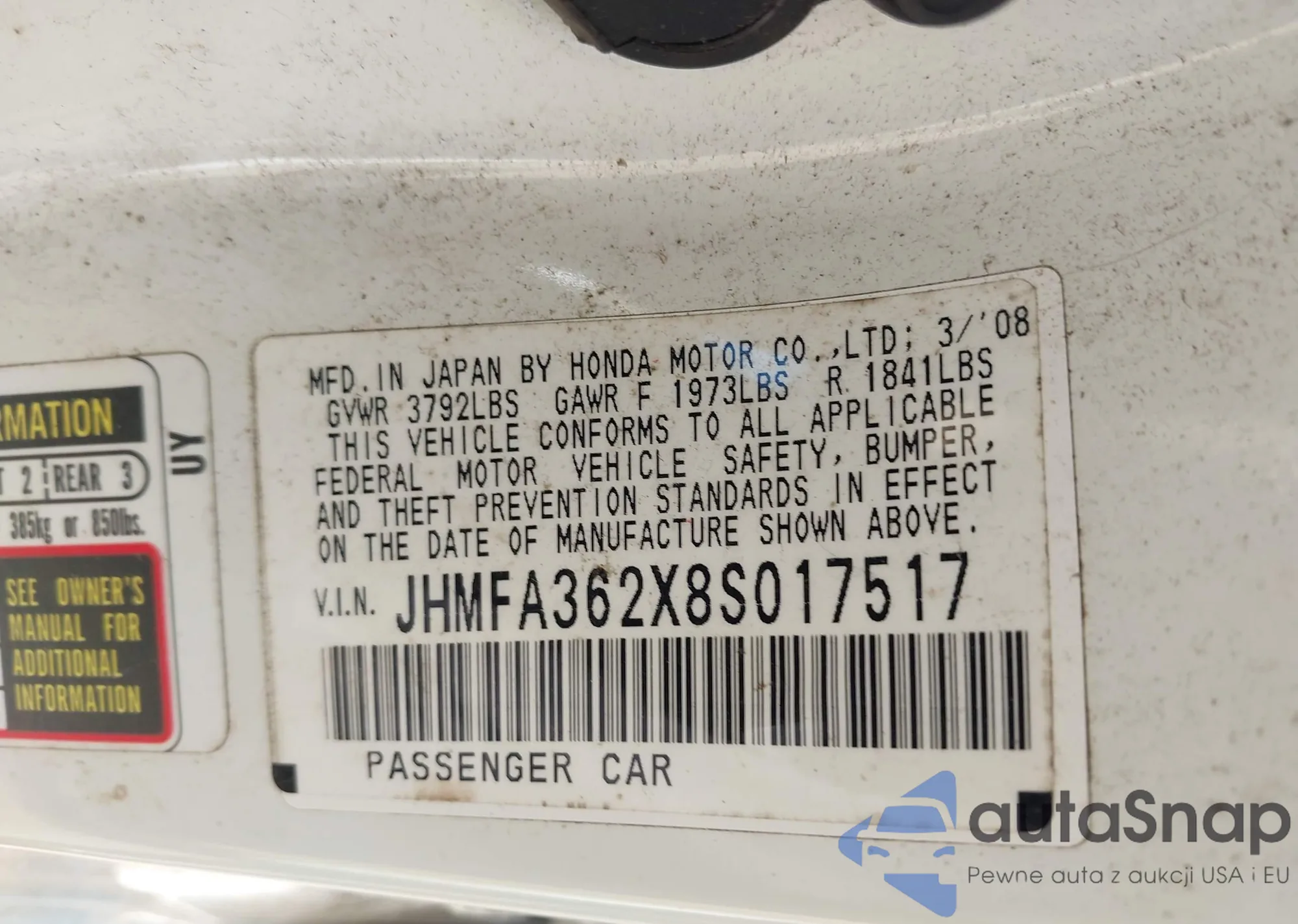 LOT: 42388807 VIN: JNKBV61F88M268524