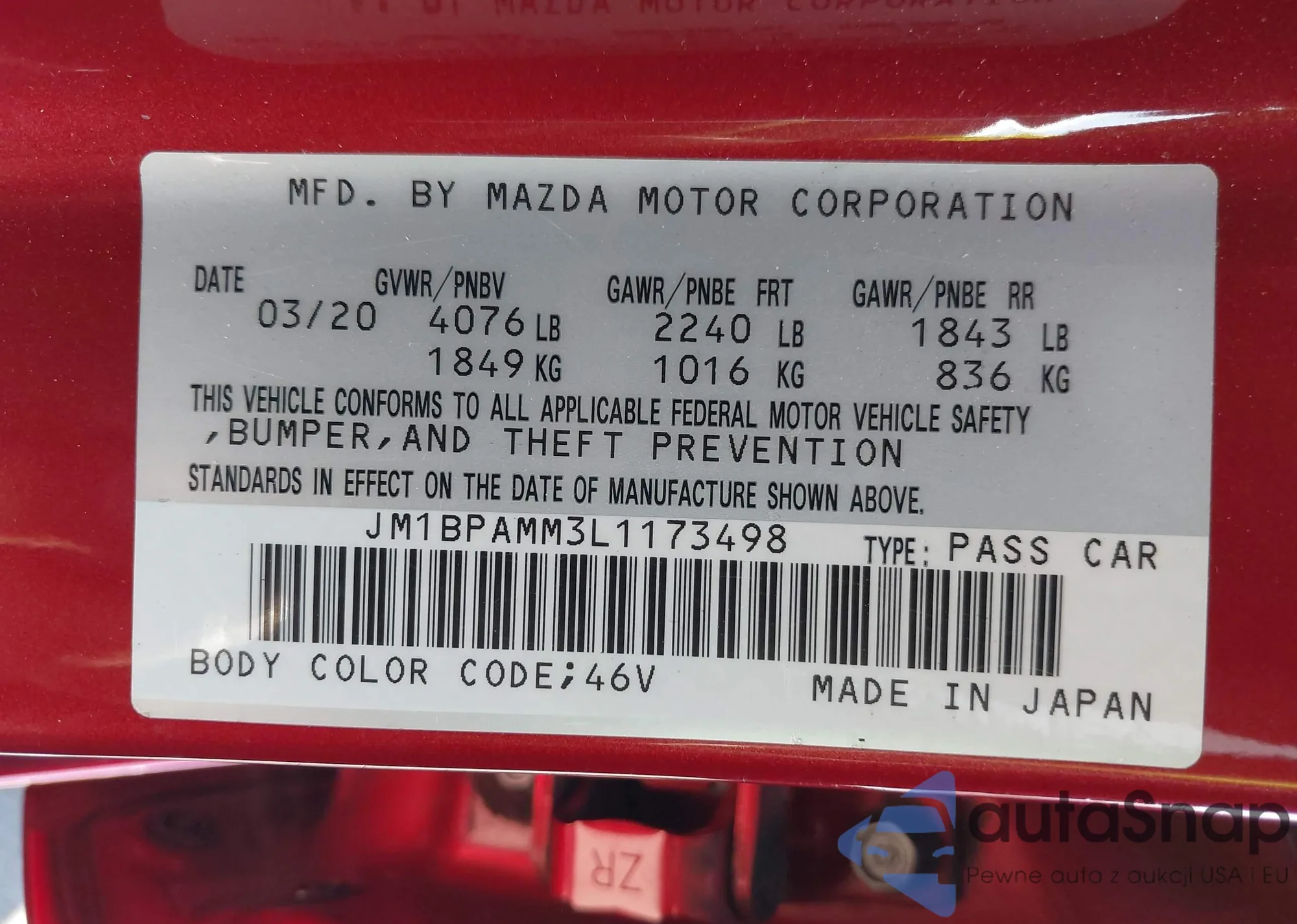 • VIN KL79MTSL4MB171331