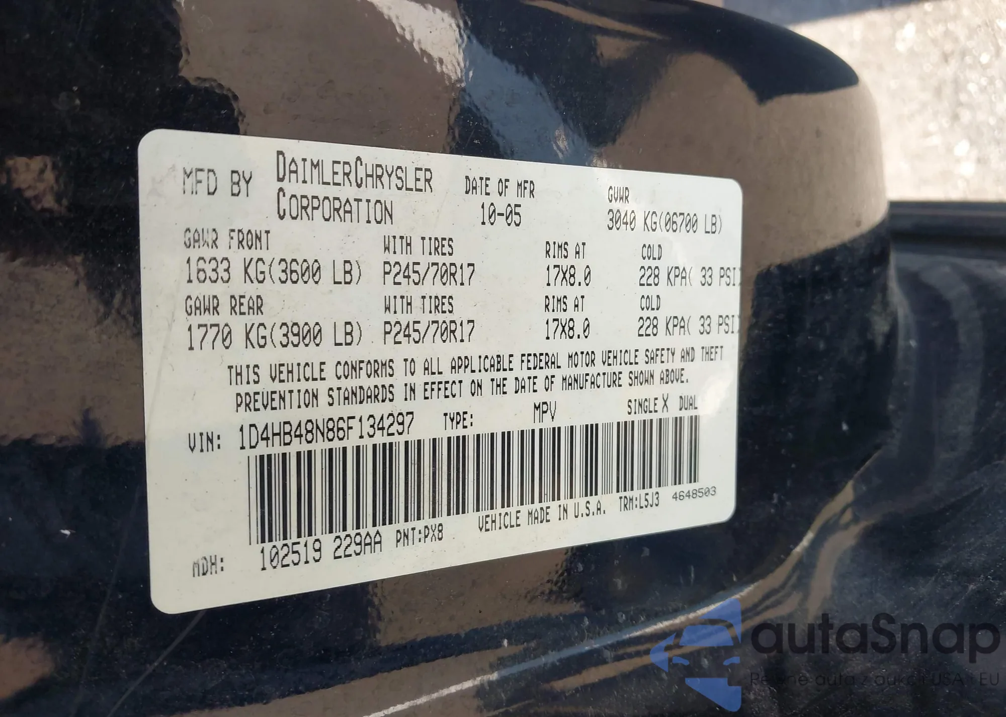 • VIN 1D4HB48N86F134297