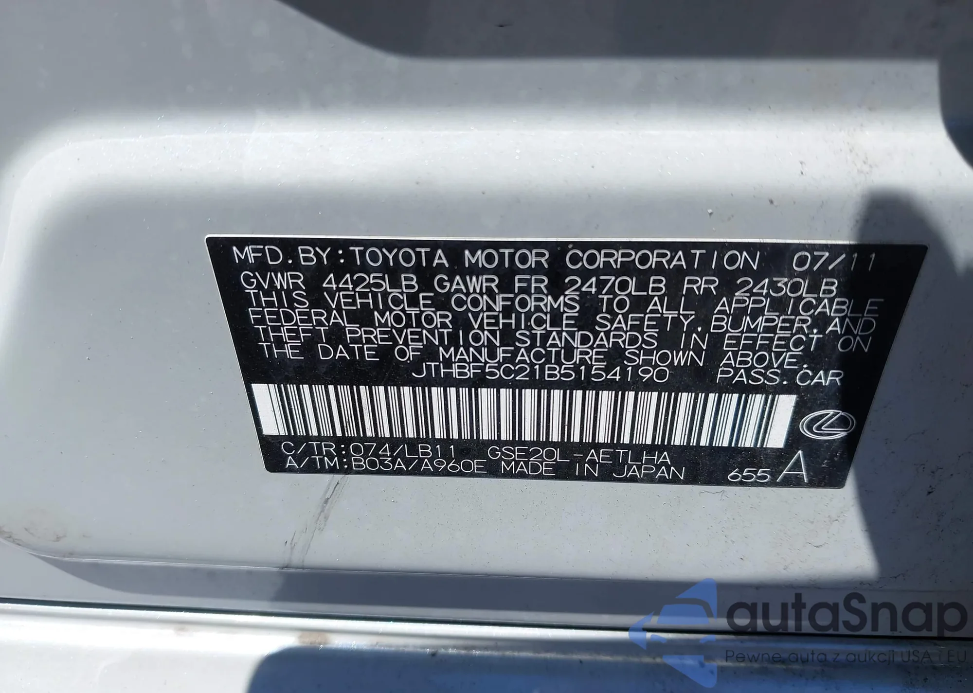 • VIN JTHBF5C21B5154190