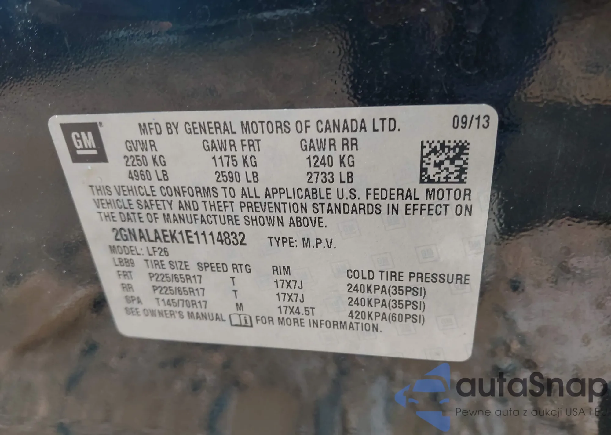 LOT: 42497957 VIN: 2GNALAEK1E1114832