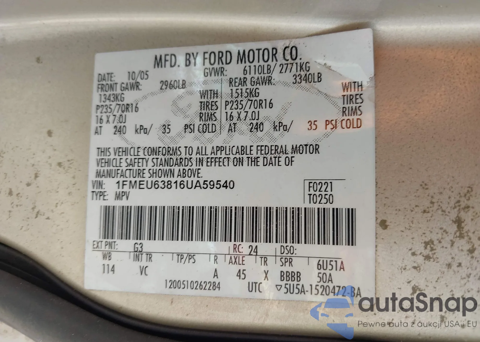 • VIN 5TFJU4GN0BX005095