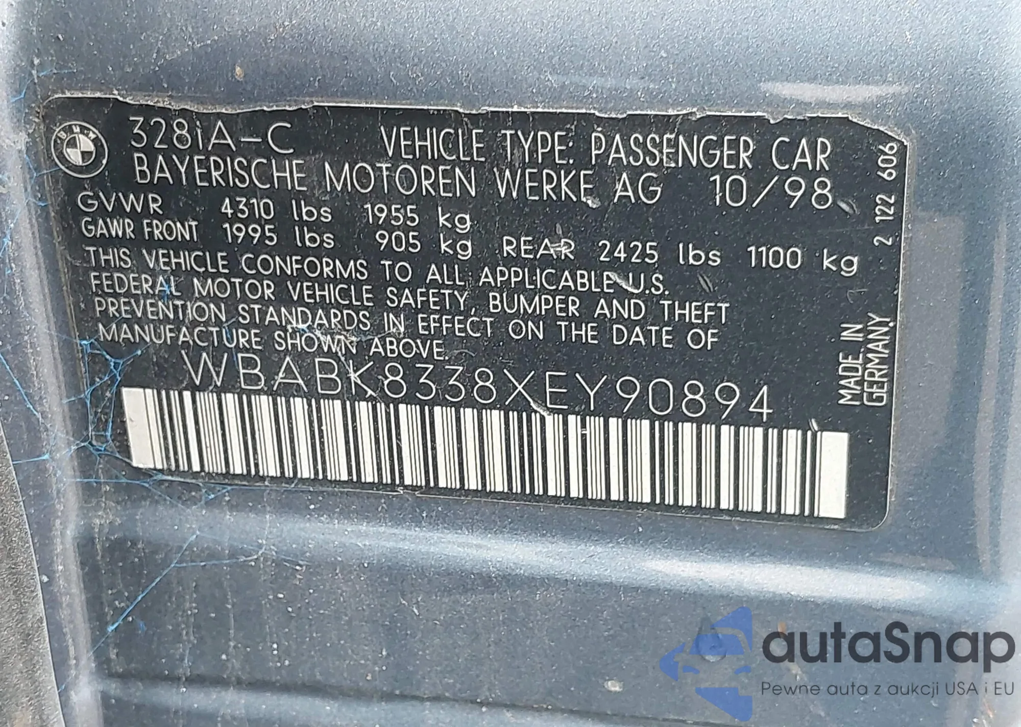• VIN WBABK8338XEY90894