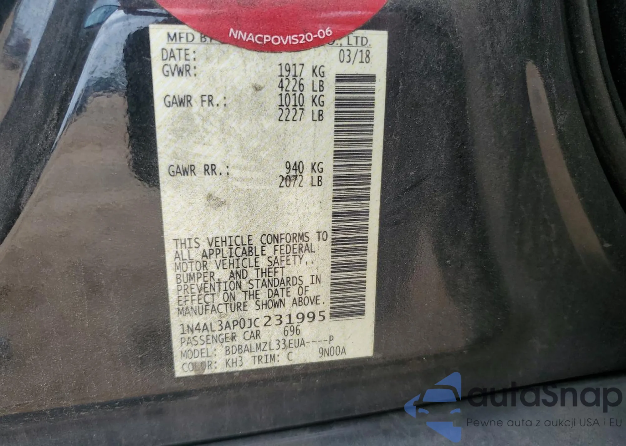 LOT: 59815145 VIN: 1N4AL3AP0JC231995