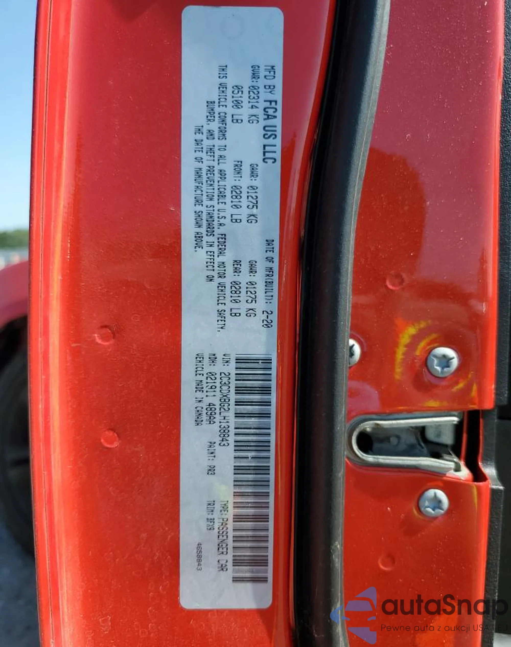 LOT: 65094535 VIN: 2C3CDXBG2LH138843