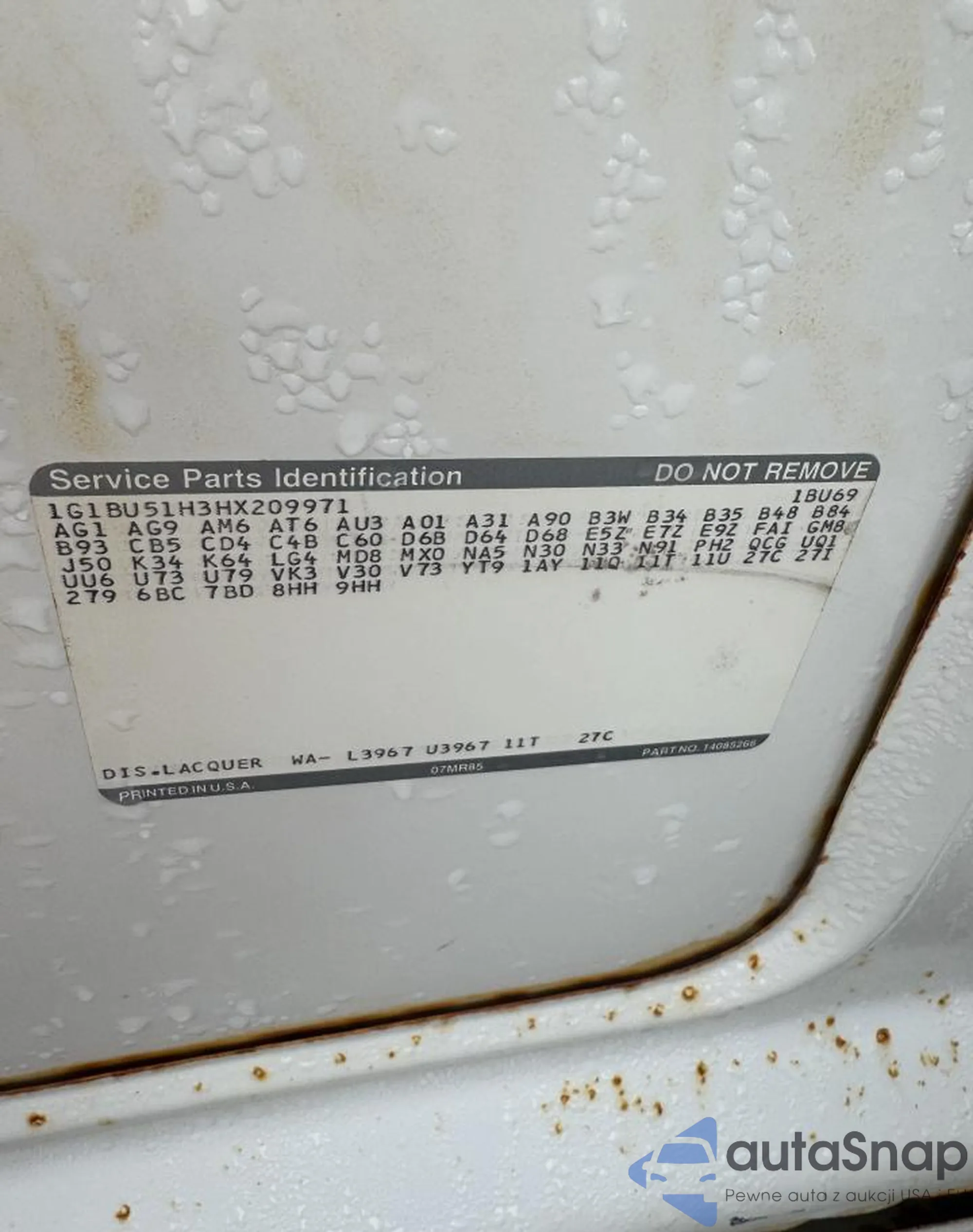 LOT: 80747555 VIN: 1G1BU51H3HX209971