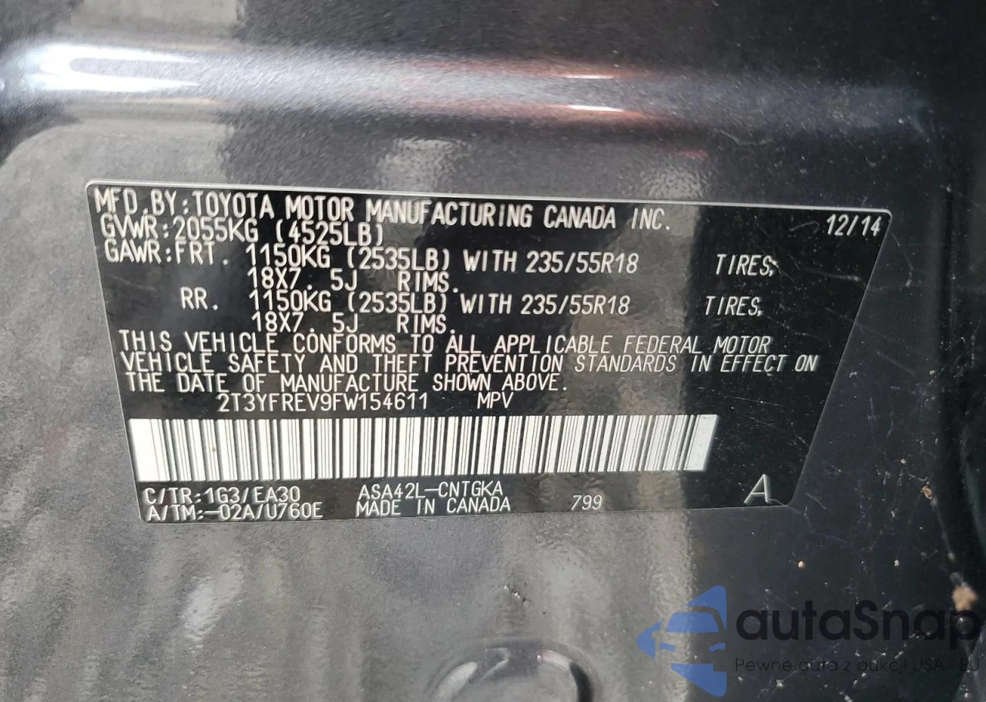 • VIN 5TDBKRFH5GS314920