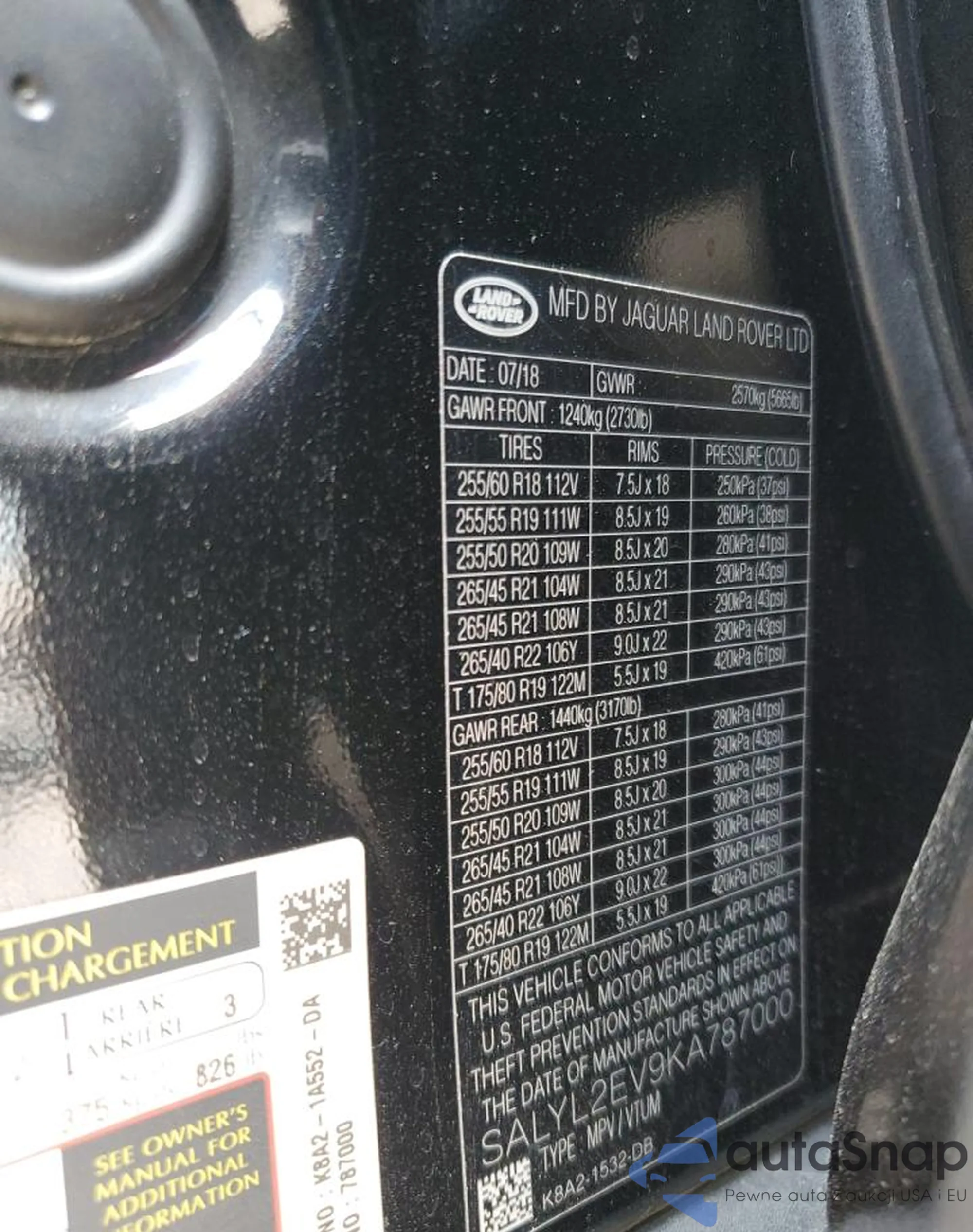 • VIN SALYL2EV9KA787000
