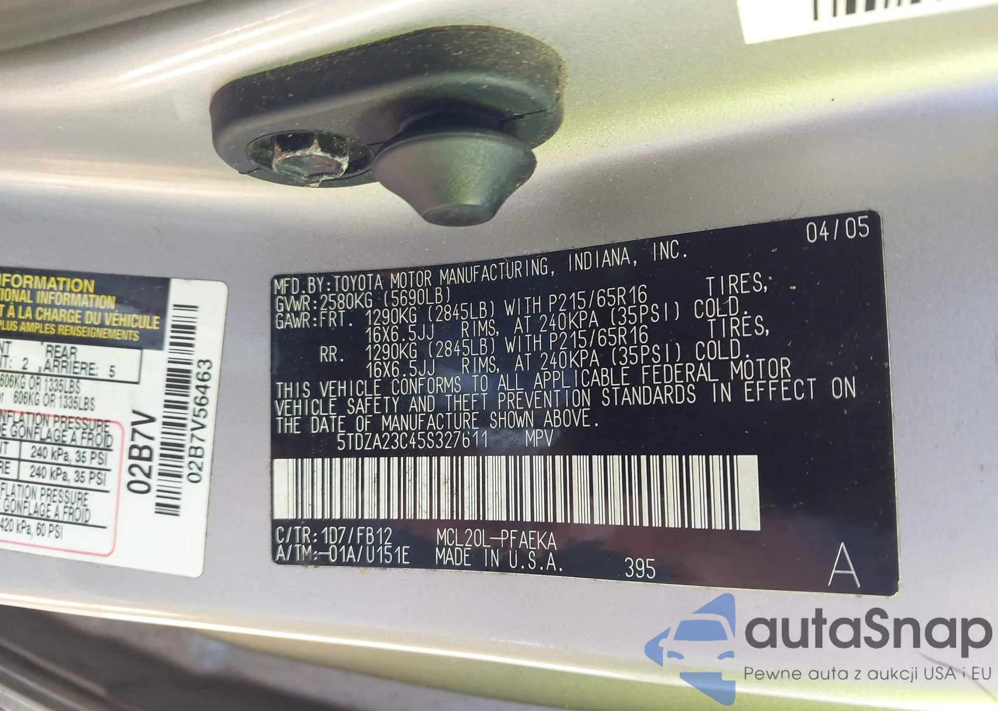 LOT: 43153611 VIN: 5TDZA23C45S327611