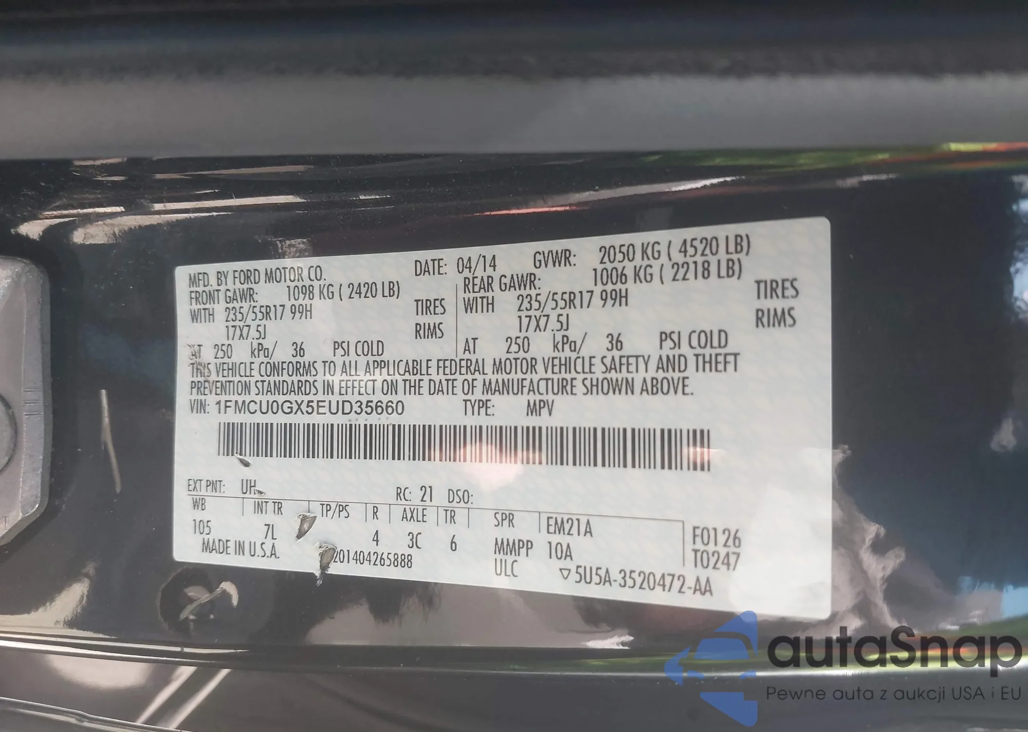 • VIN 1FMCU0GX5EUD35660