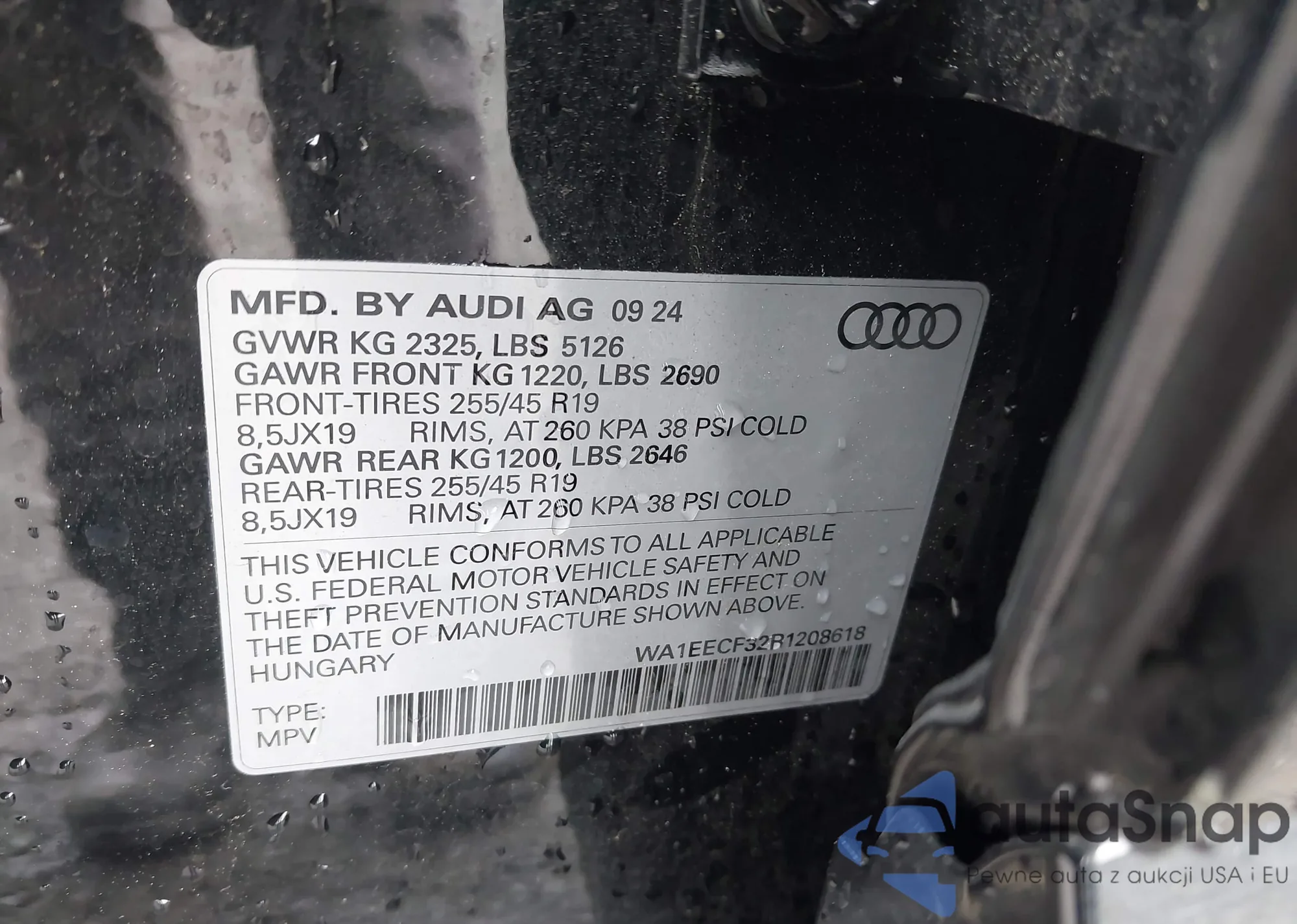 LOT: 42362479 VIN: WA1EECF32R1208618