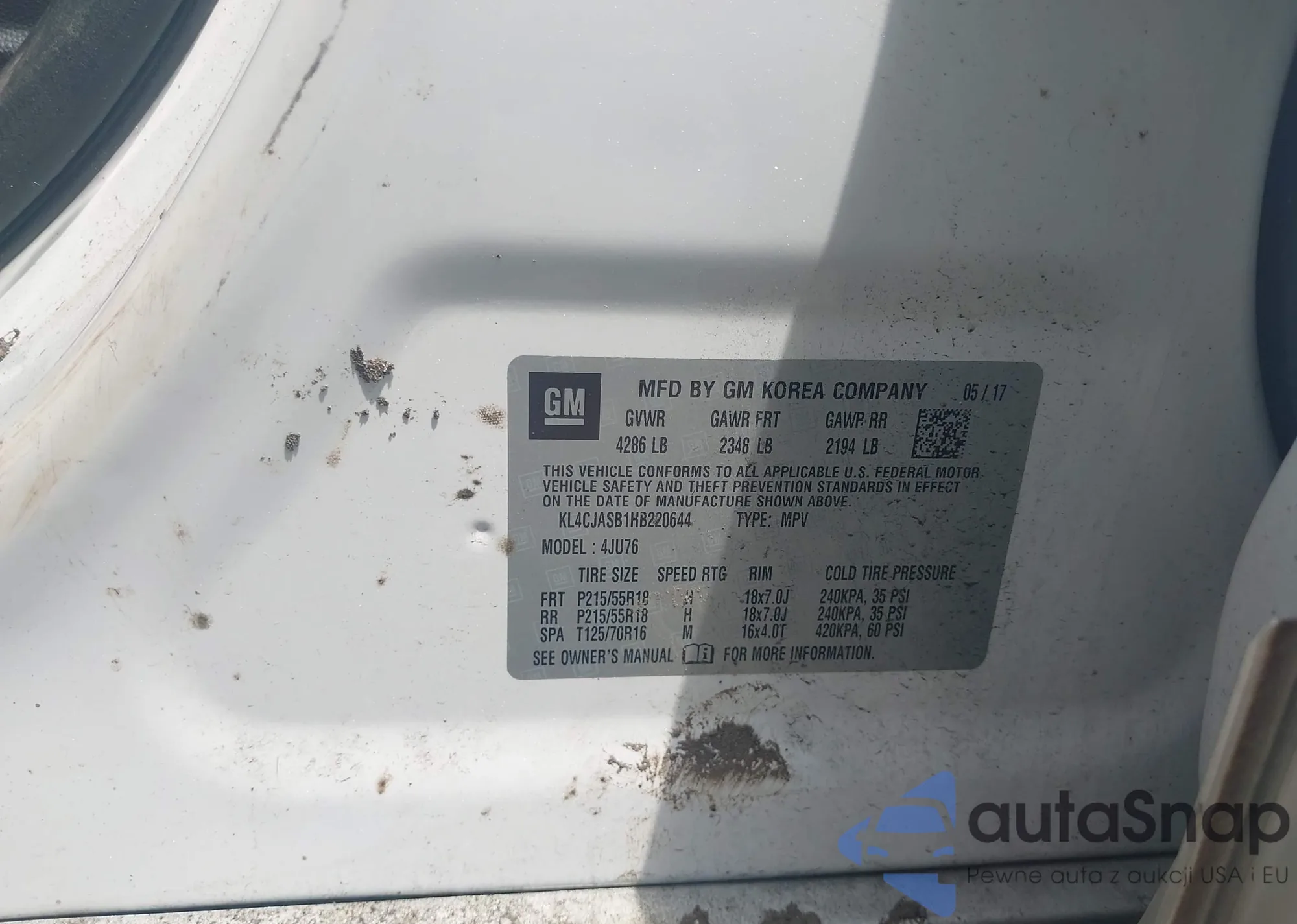LOT: 42366978 VIN: KL7CJLSB5MB311845