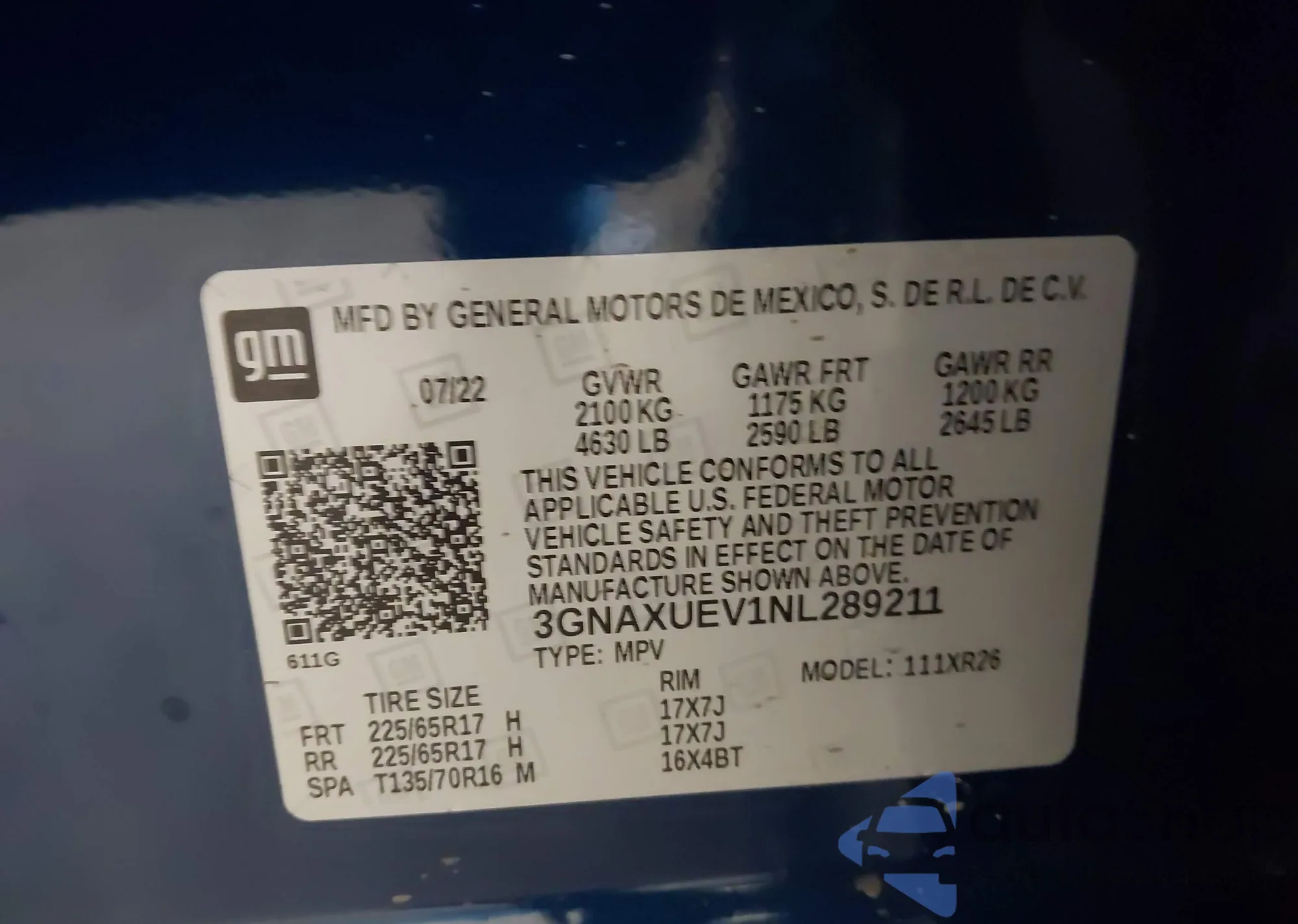 LOT: 42522853 VIN: 3GNAXUEV1NL289211