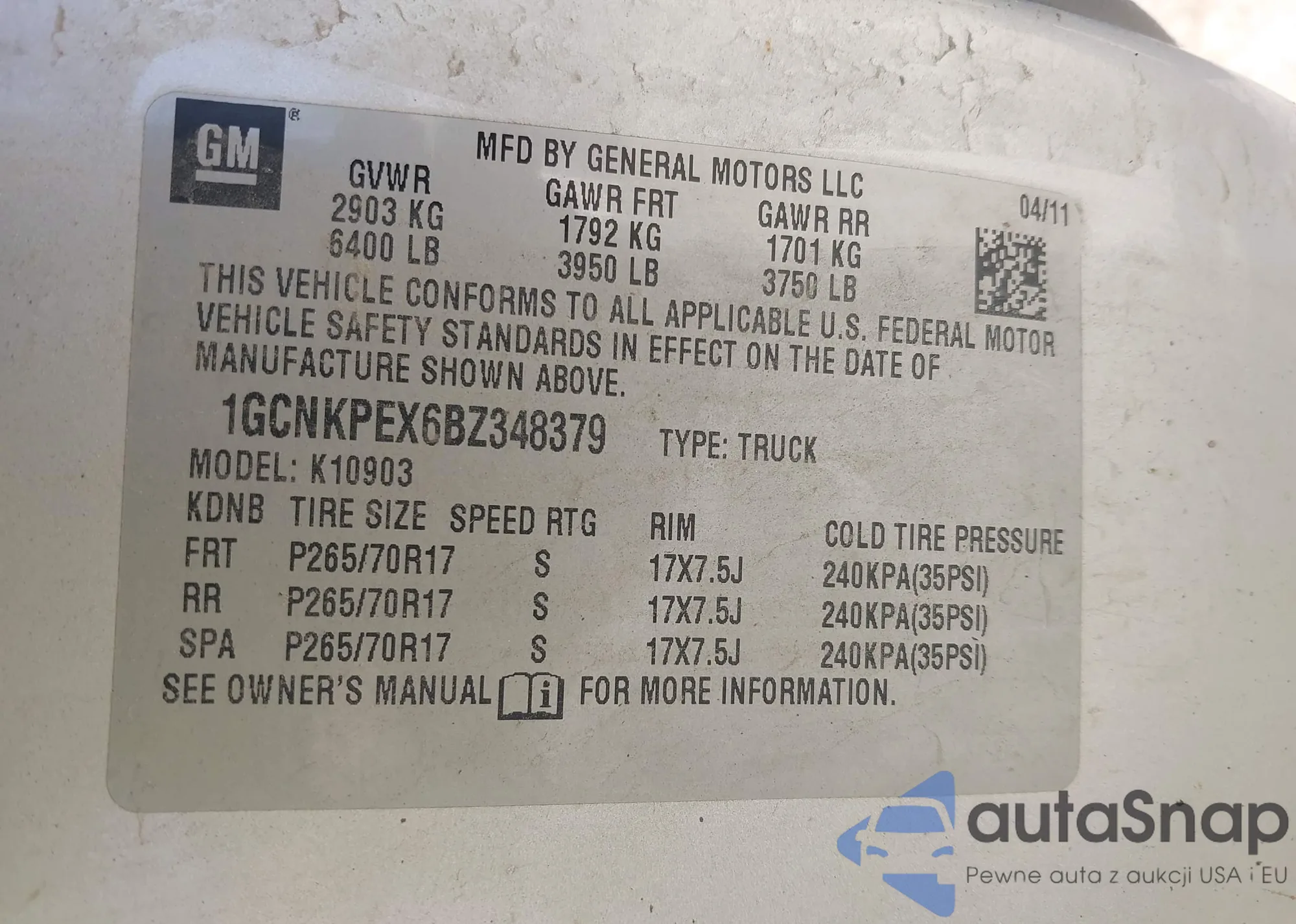 • VIN 3GKALYEG1PL132847