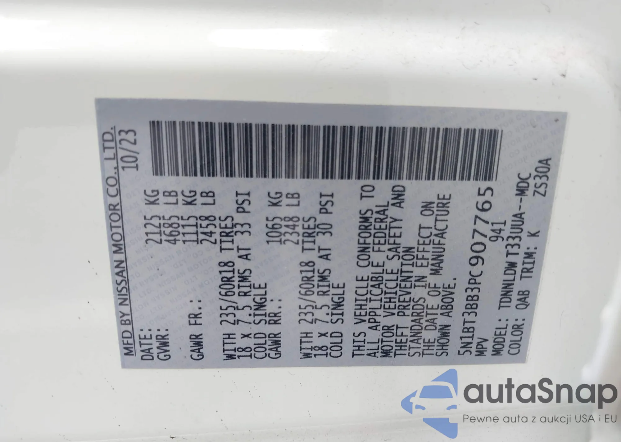 • VIN 5N1BT3BB3PC907765