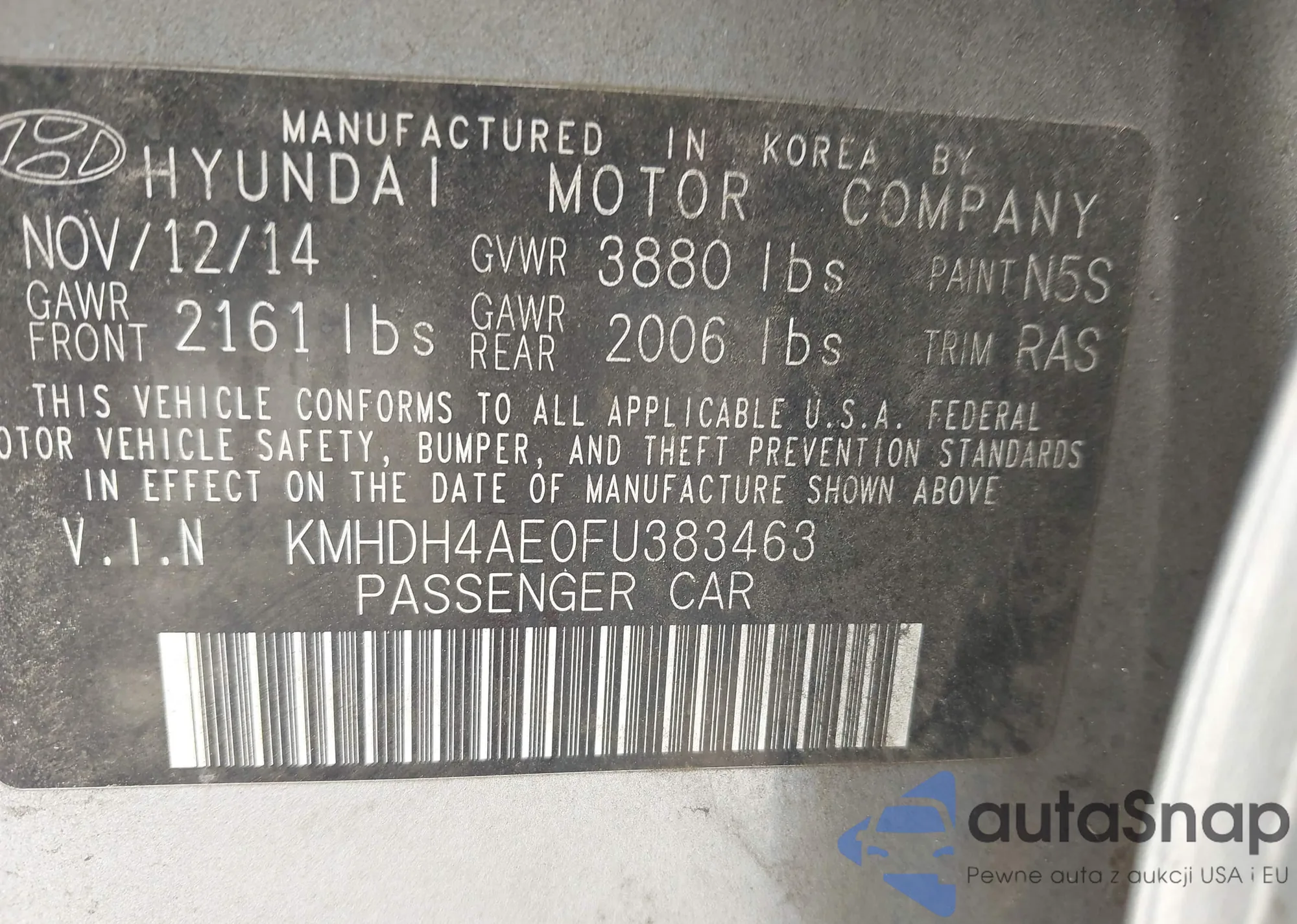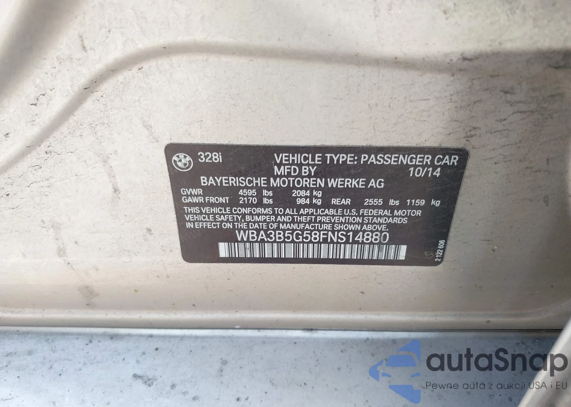 LOT: 42566865 VIN: WBA3B5G58FNS14880
